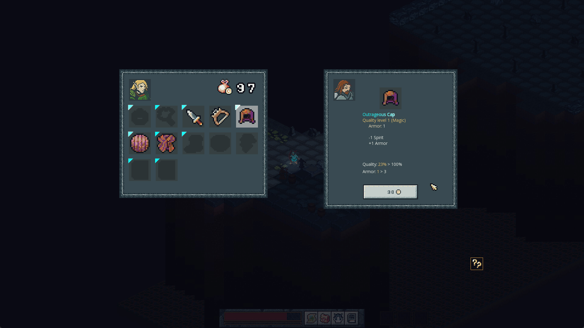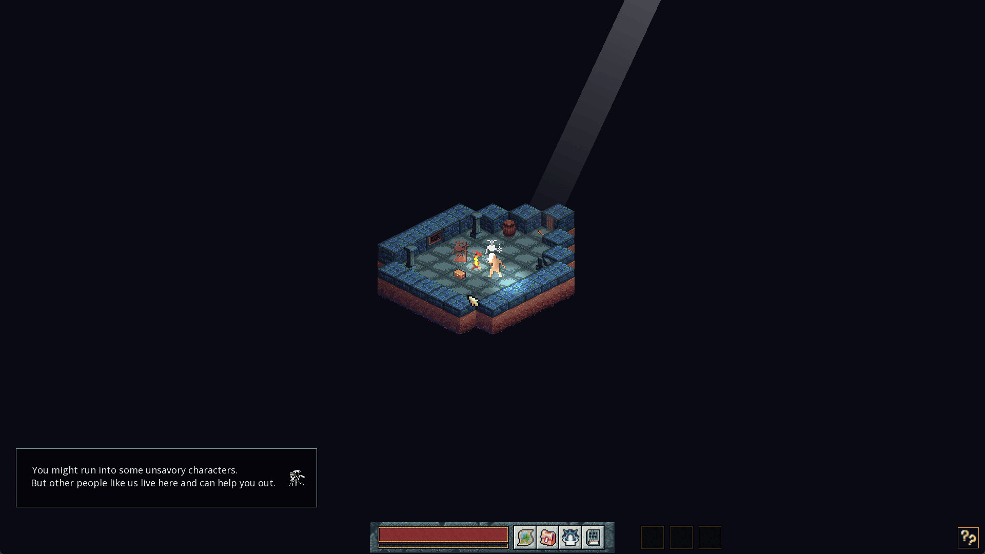 Beyond the Bridge is a tribute to one of the earliest roguelikes, Moria. Your journey begins with creating your character by choosing a class. From there, you'll explore six procedurally generated levels before reaching the goal of your quest and making your escape!
