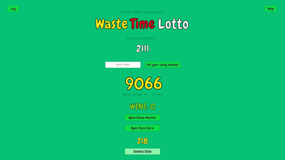 A lottery where winning is rare, but clicking is endless! Watch numbers roll, enter your lucky pick, and embrace the odds. No money, just infinite glory! Plus, a totally useless yet oddly satisfying clicker. Come waste some time—you’ve got nothing to lose… except time!