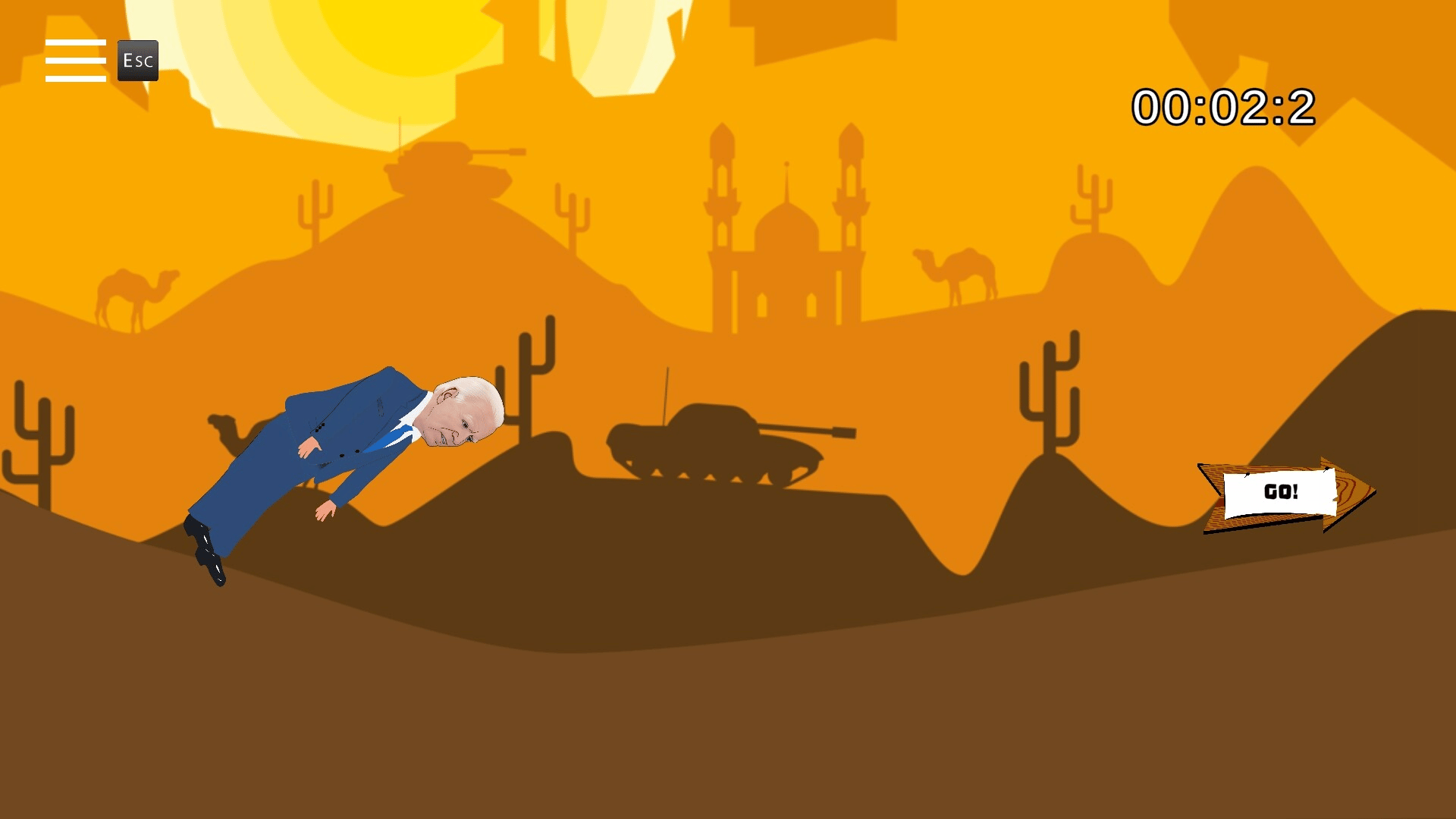 A satirical 2D platformer in the spirit of the classic physics-based puzzle game QWOP. Help President Den finish his tasks, getting caught in absurd situations and making decisions that lead the country to chaos. A unique blend of humor and absurdity awaits you in every mission!