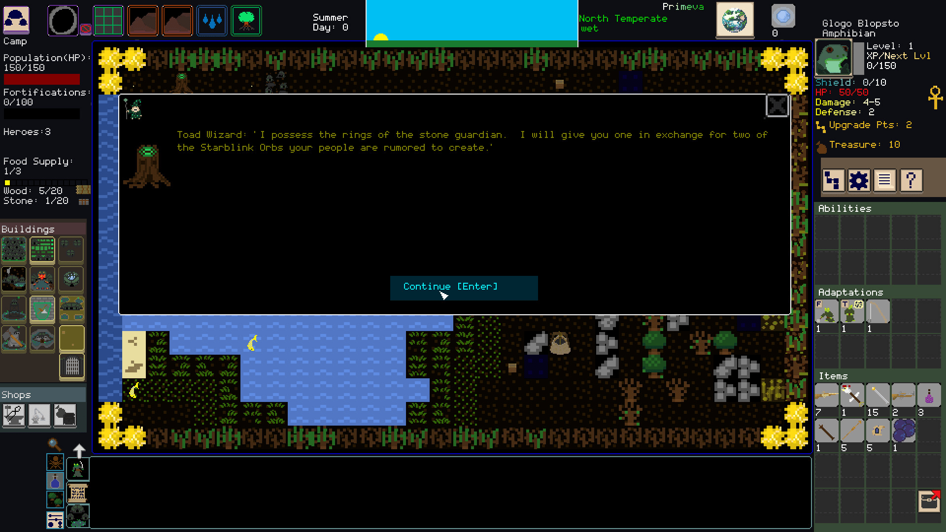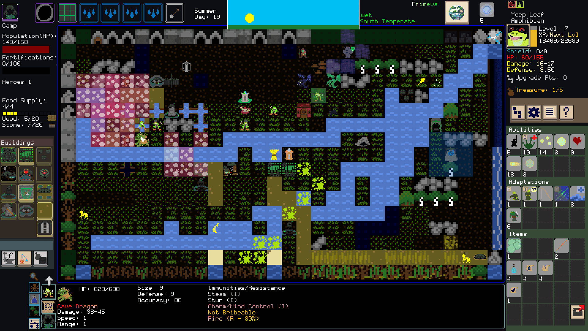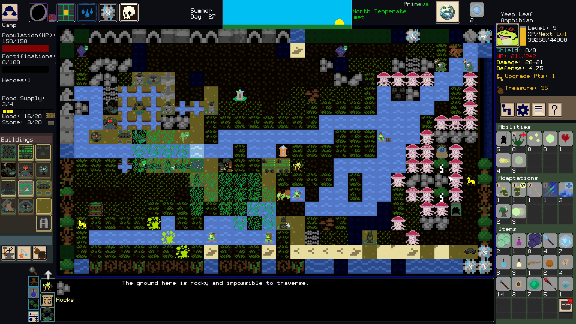Three Against the Odds is a base defense fantasy roguelike. Build your amphibian hero(es) and settlement as wave after wave of enemies descends from bordering terrain that you can terraform. Play through three campaigns, conquering the shadowy powers that have corrupted the world of Primeva.