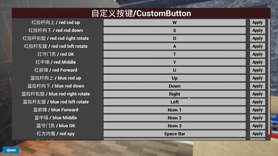 A two-player game on a single computer, where both players control rods to kick the ball into the opponent's goal and score points. This game also features an impostor control mechanic.