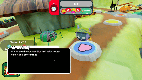 You are a cake nanite. Your job is to rebuild the towns through cooperatives, sustainability, and pound cakes. Make your way across the board, discovering this new baked goods world!