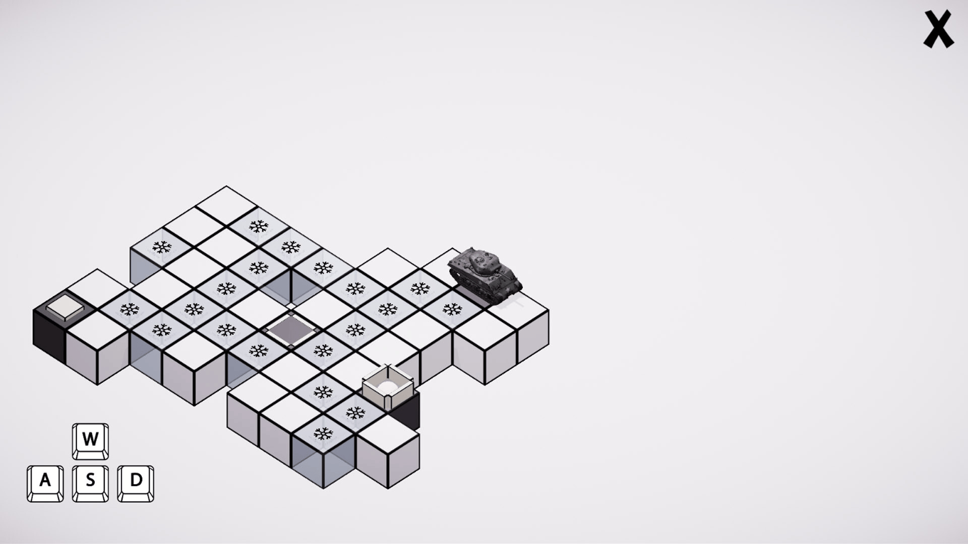 A logical puzzle game in which the player uses the WASD to control a tank and solve puzzles. While the tank is moving, cubes fall under it, you need to find the shortest path to the exit from the level. The game has 14 different levels. The game has achievements and a leaderboard
