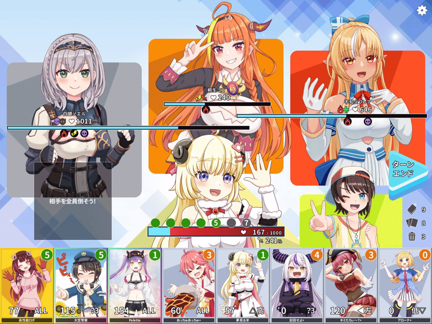 Rogue-like card RPG where you build your deck with cards of hololive members! Fight against holomem to strengthen your deck and defeat boss holomem!