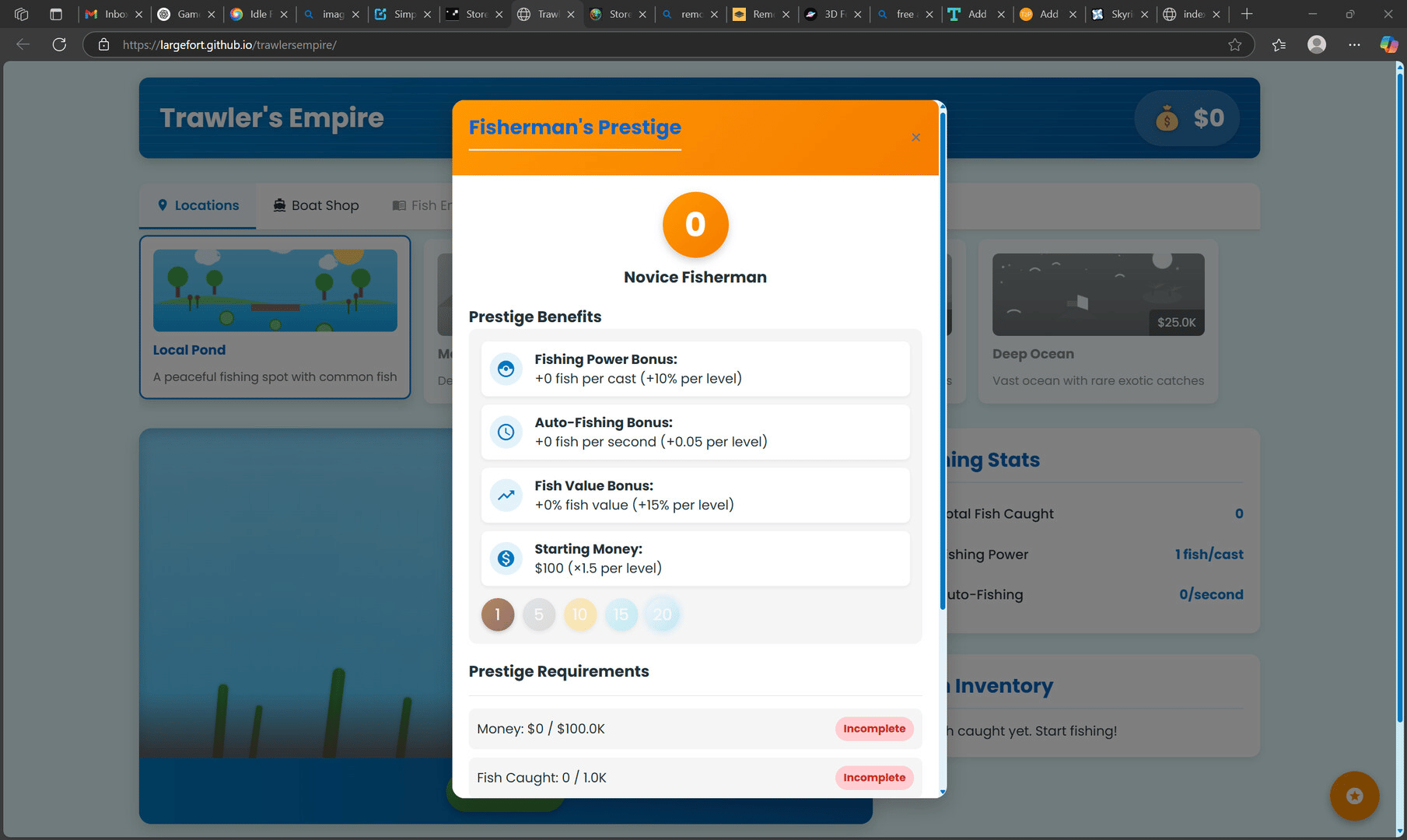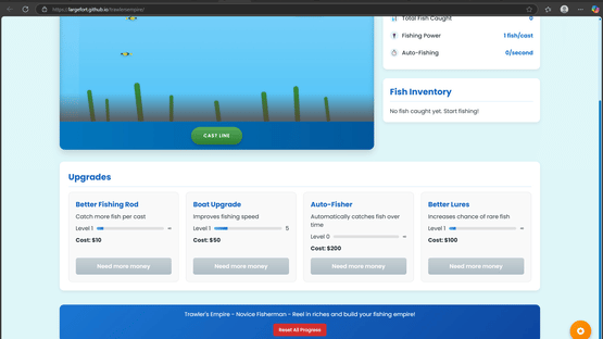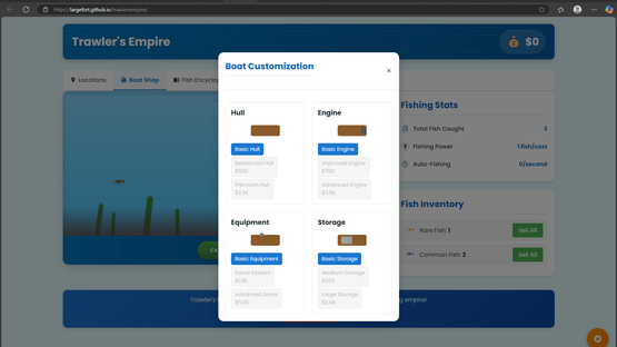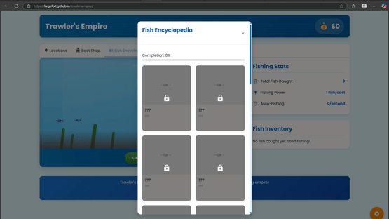 Build your fishing empire in this relaxing idle tycoon game. Upgrade your boat, explore new waters, catch rare fish, and earn profits—even while offline. Master the seas and grow your Trawler's Empire!