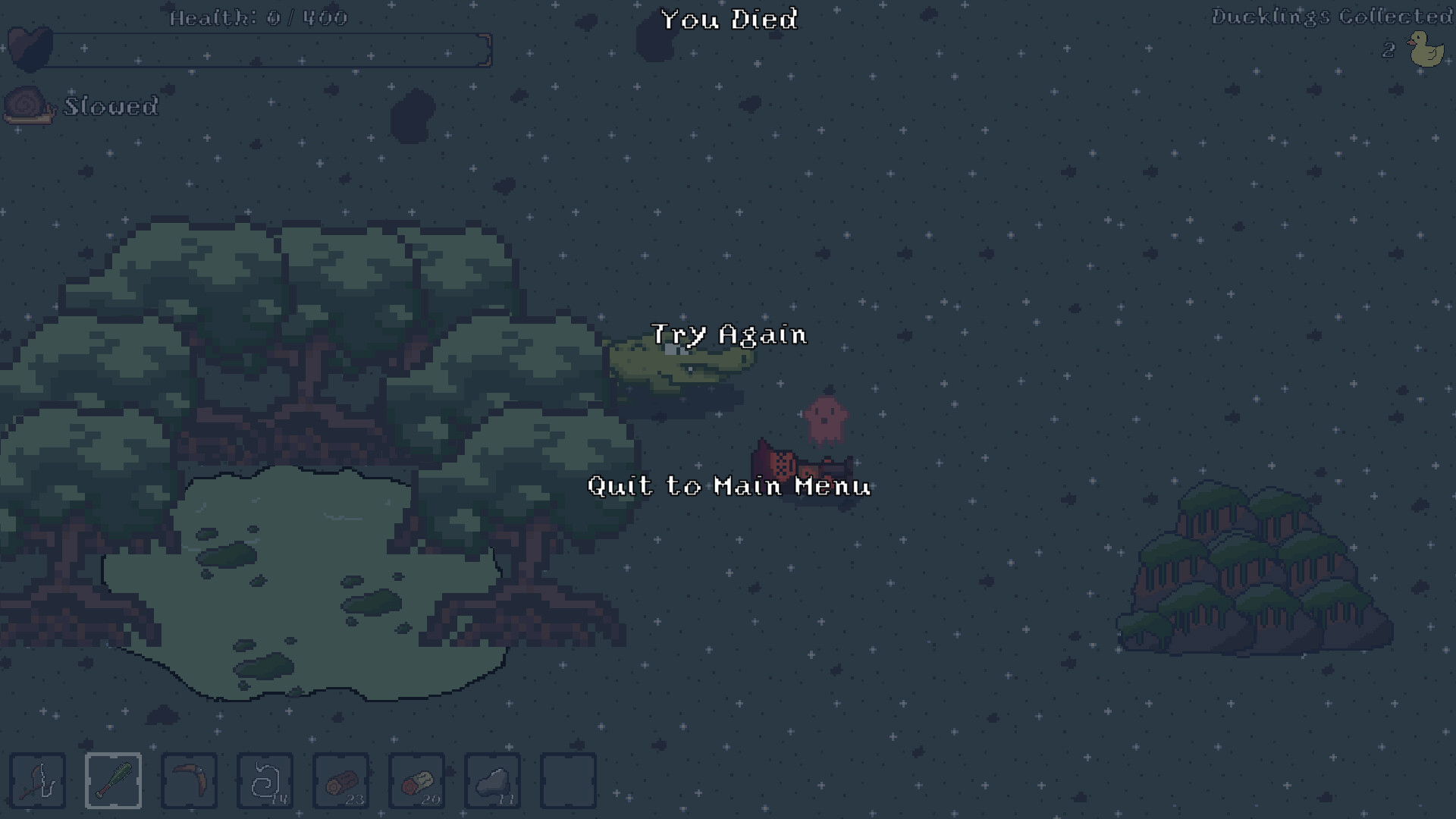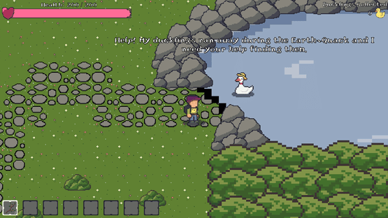 Earth-Quack is an adventure focused game with some survival elements where you play as a young boy on a mission to save a group of lost little ducklings and return them to their worried mother. As you journey through these lands you will encounter many things that will both help and hinder you in your quest to save the ducklings: