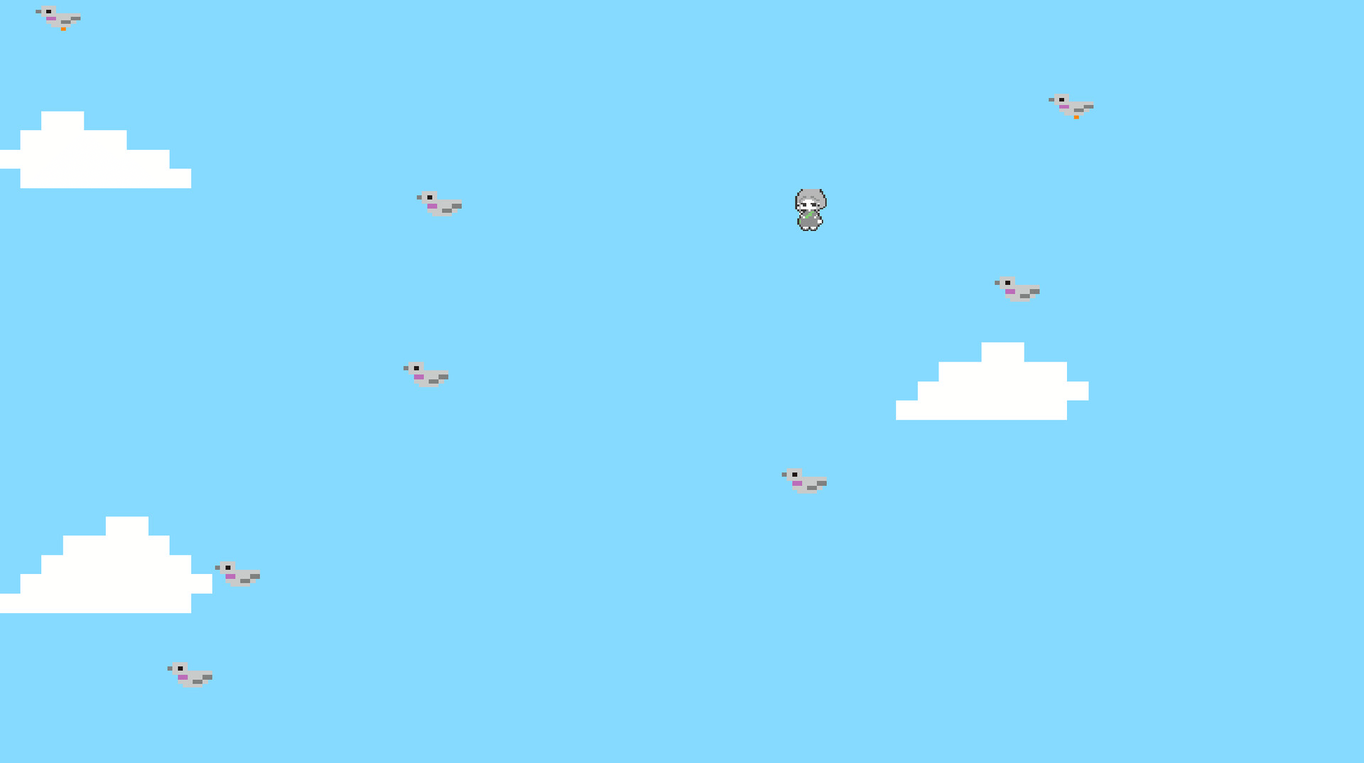 A platformer where players use arrow keys and spacebar to jump/fly. The game randomly generates floating platforms and obstacles, and players can choose to collide with monsters to eliminate them or dodge them, challenging themselves to continuously ascend upward.