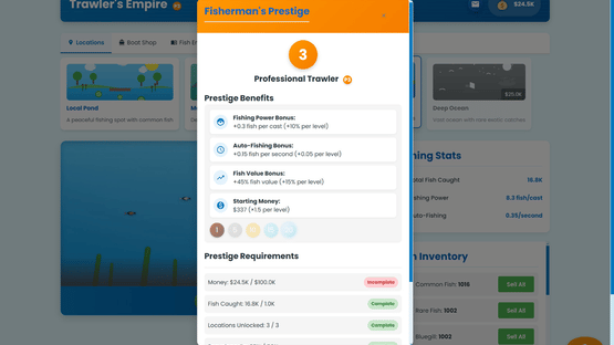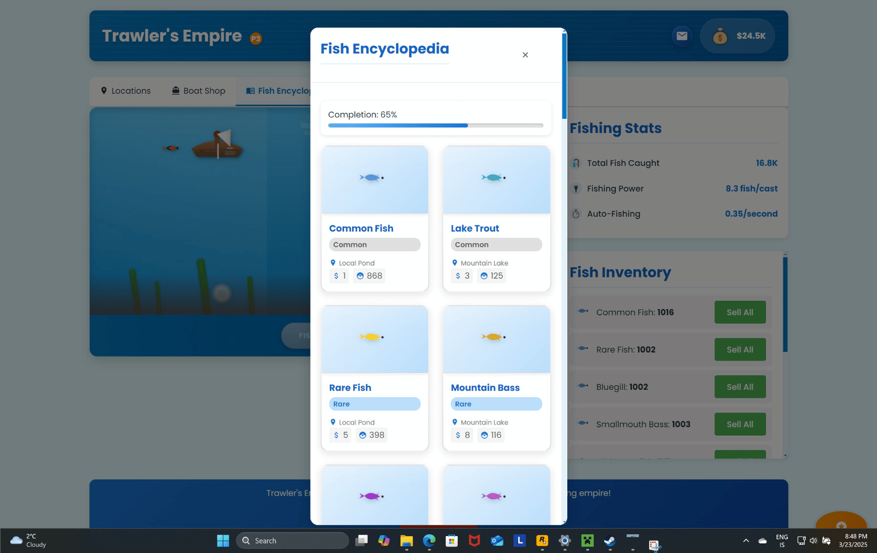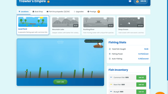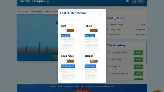 Build your fishing empire in this relaxing idle tycoon game. Upgrade your boat, explore new waters, catch rare fish, and earn profits—even while offline. Master the seas and grow your Trawler's Empire!