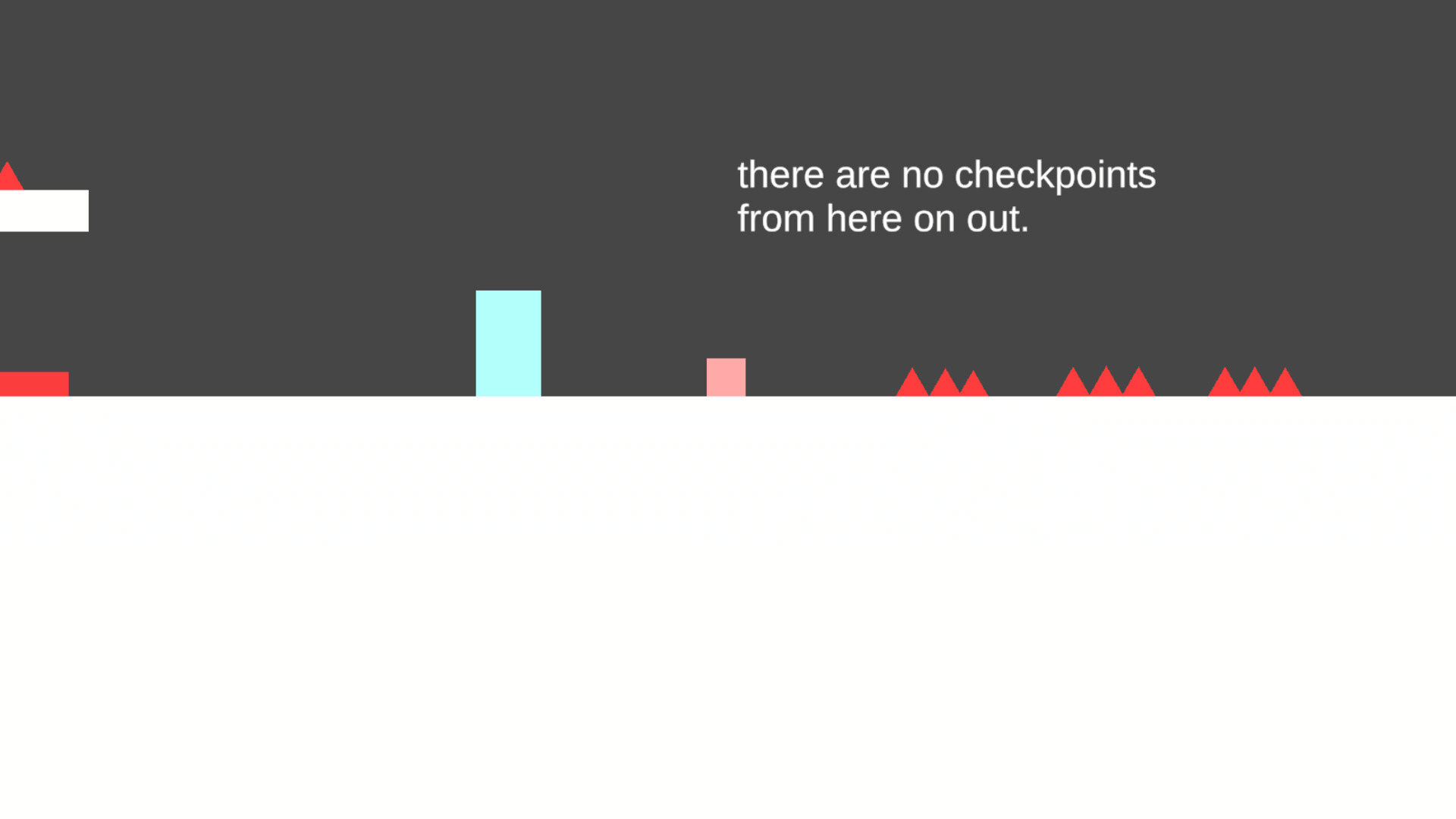 Your objective is to reach the end of the game while avoiding obstacles along the way some of the obstacles are spikes, thwomps (objects that kill you and move up and down), platforms that disappear on a timer, lasers, bullet spawners, and much much more. Good Luck :)