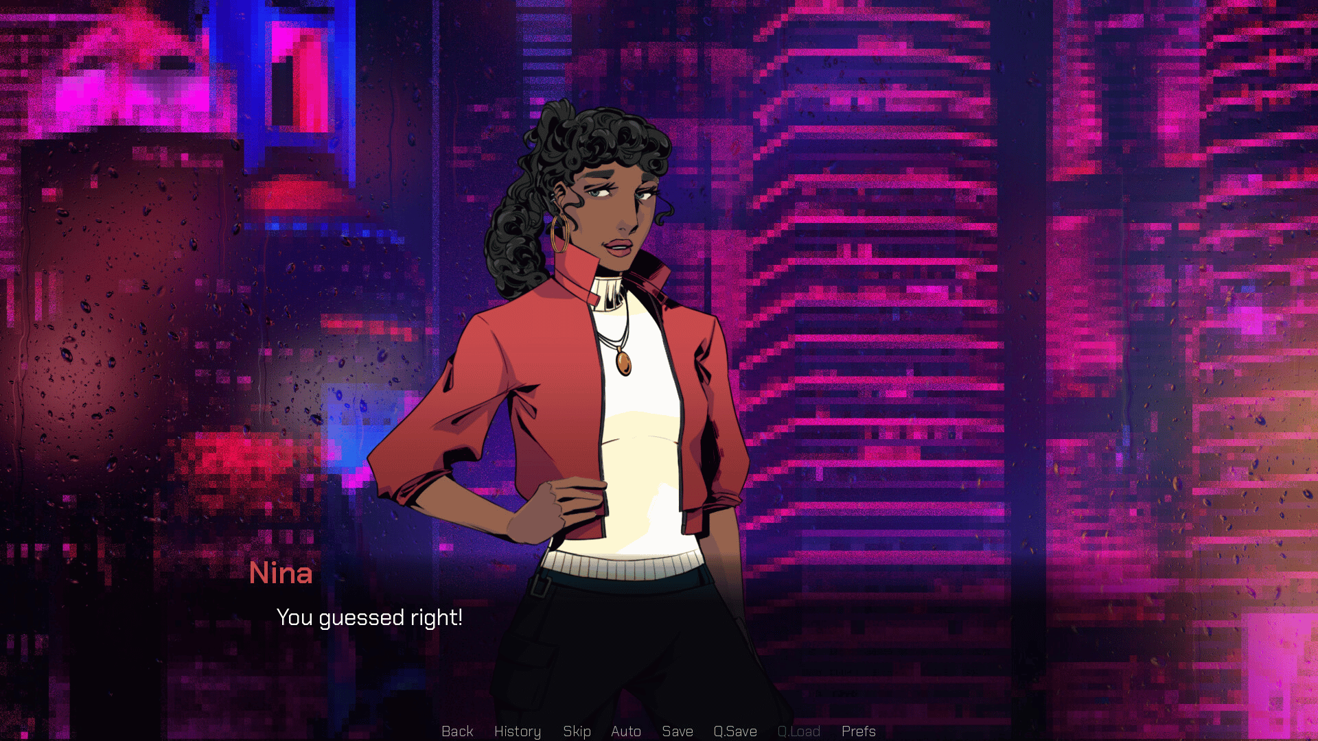 Univocity is a short cyberpunk visual novel wrapped in neon aesthetics with a lush atmospheric soundtrack, featuring a deep and emotional conversation between two people about taking down a global tech monopoly.