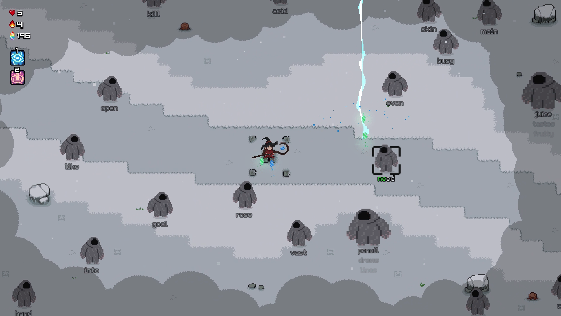 Unleash powerful magic with your keyboard in this fast-paced Typing game with Roguelite elements. Battle relentless waves of enemies by typing the words tethered to them to cast spells. Collect gems to master new abilities and grow stronger each run.