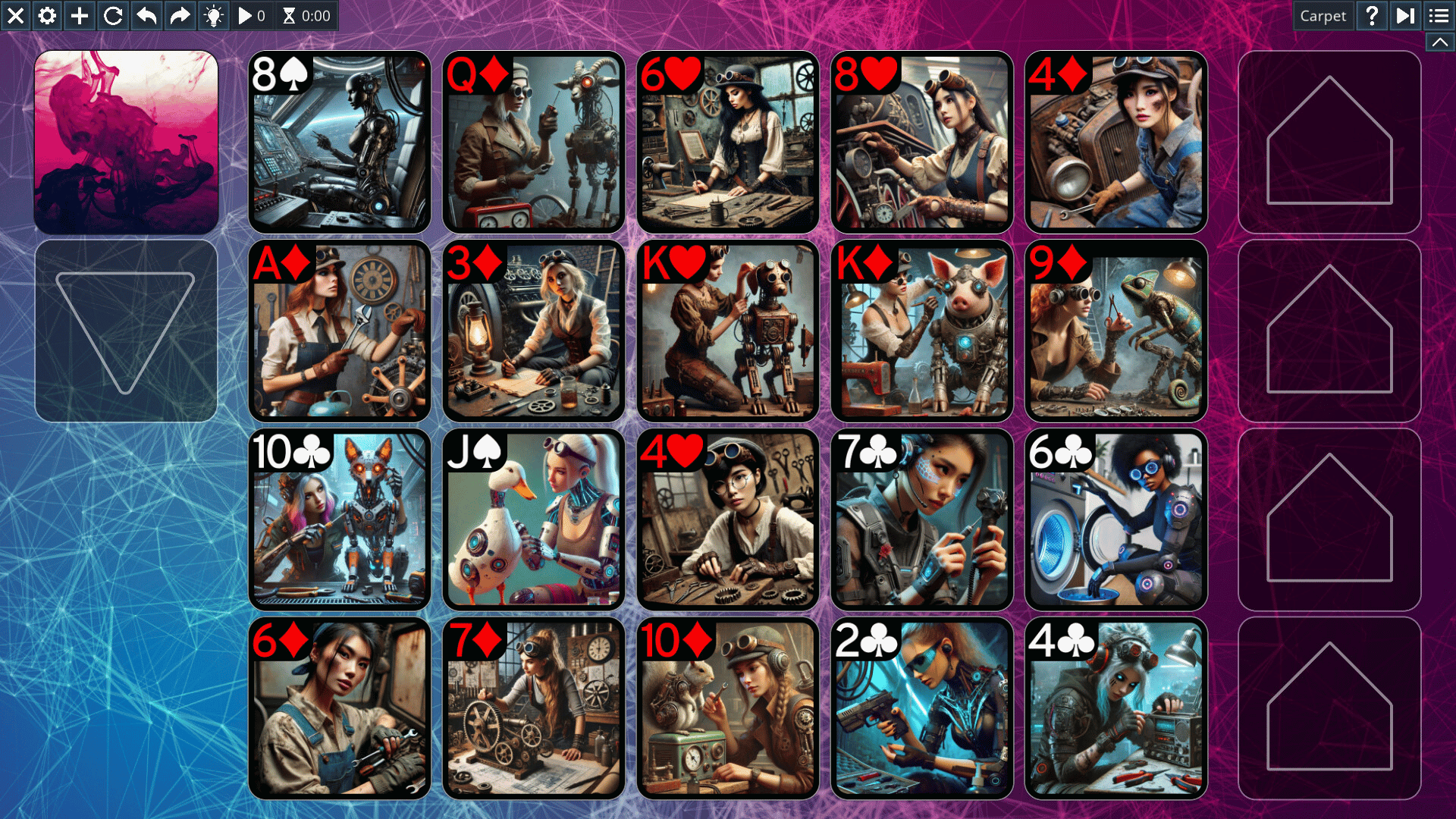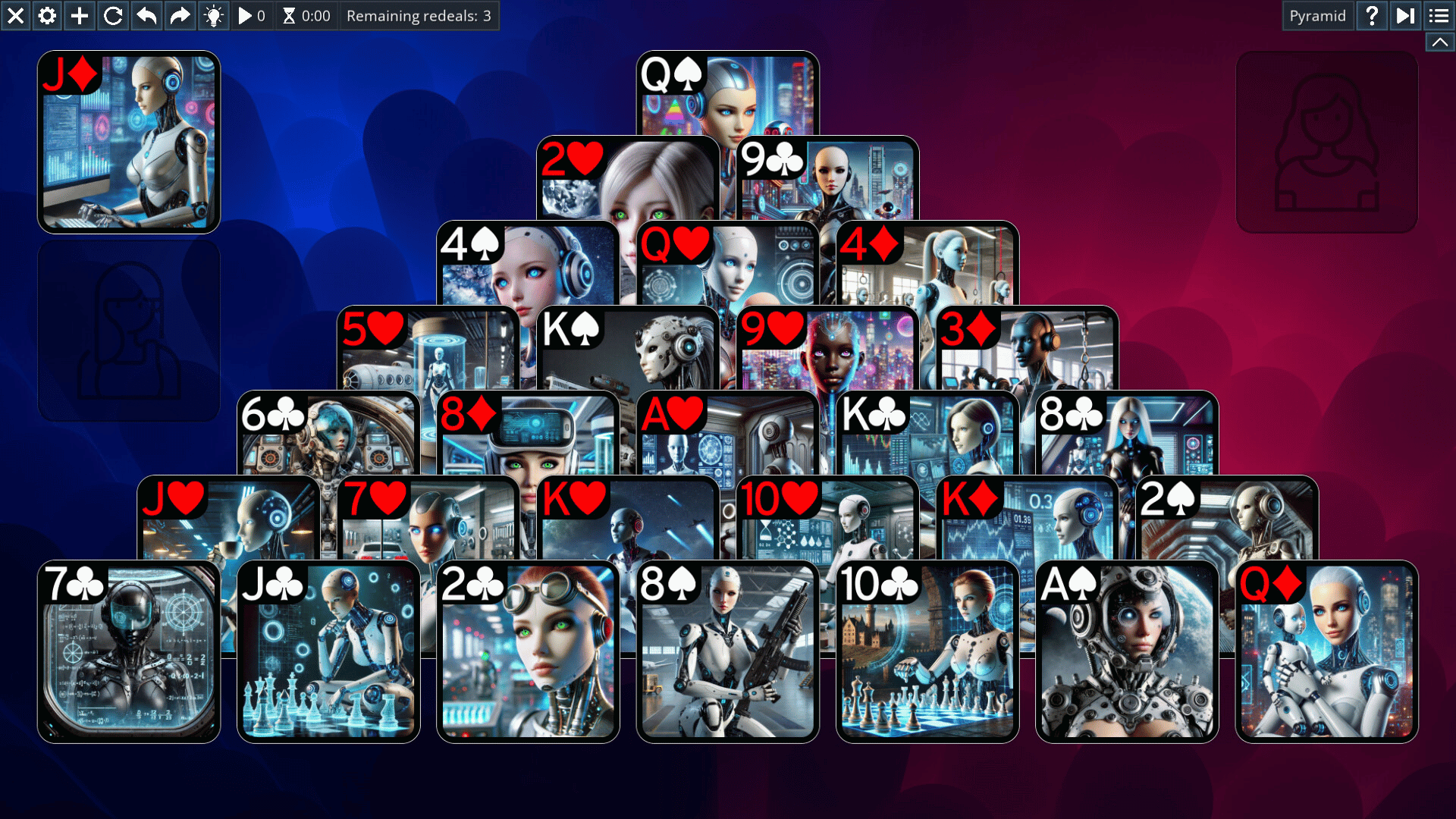 Additional AI-generated card sets with beautiful girls for Free Solitaire. Also, backs, backgrounds, and board elements.