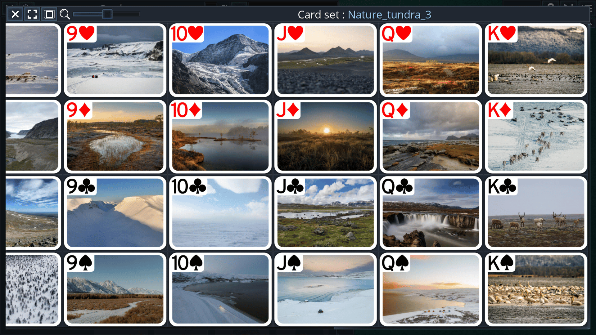 61 card sets with photos of nature: landscapes, animals, thematic close-ups.