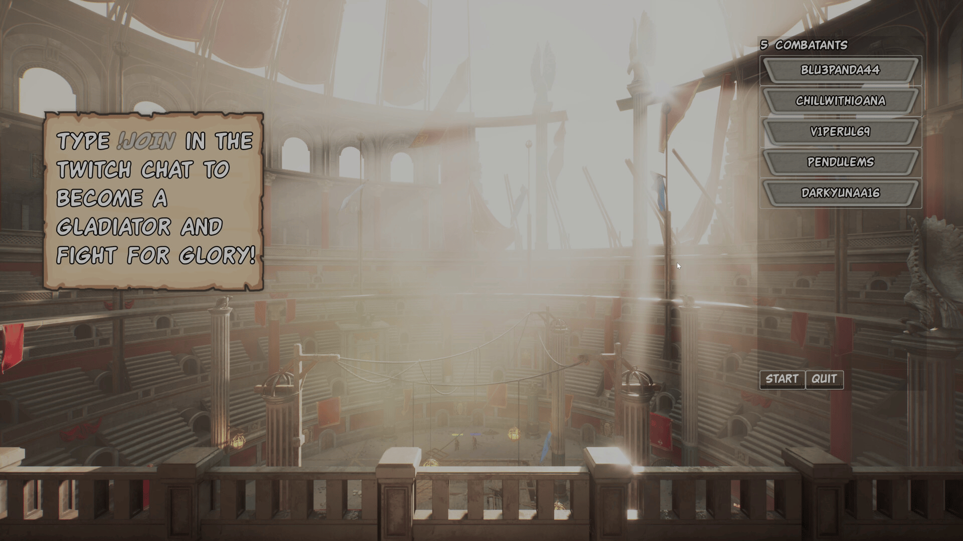 Where your audience transforms into fierce gladiators, ready to fight for glory in the ultimate Twitch-integrated battle simulator.