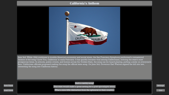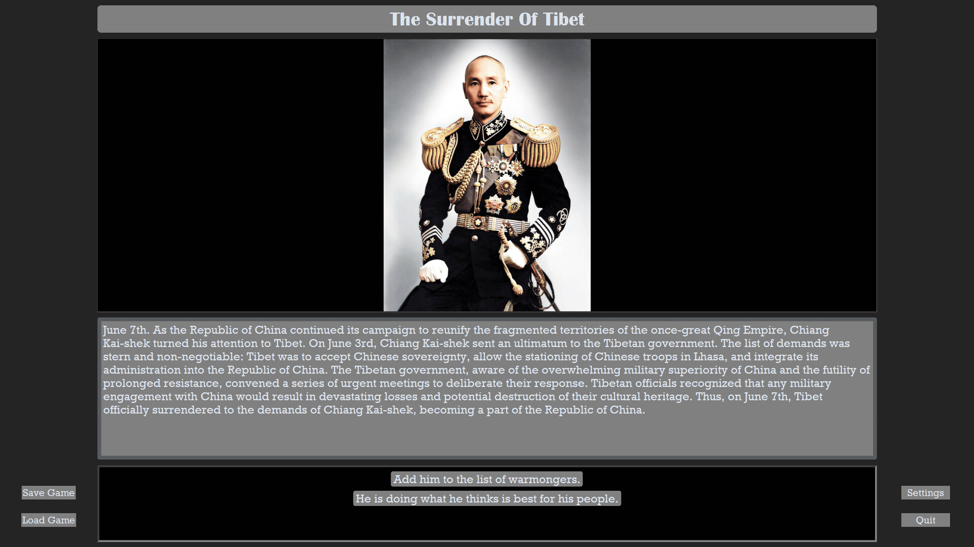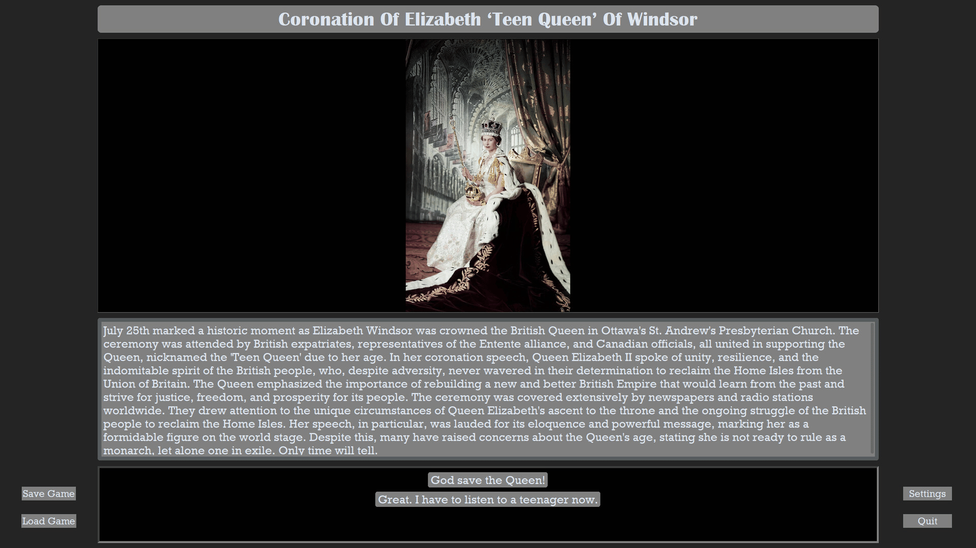 Hail Britannia is a text-based game with lite RPG elements set in an alternate 1944 where the Central Powers won World War 1.