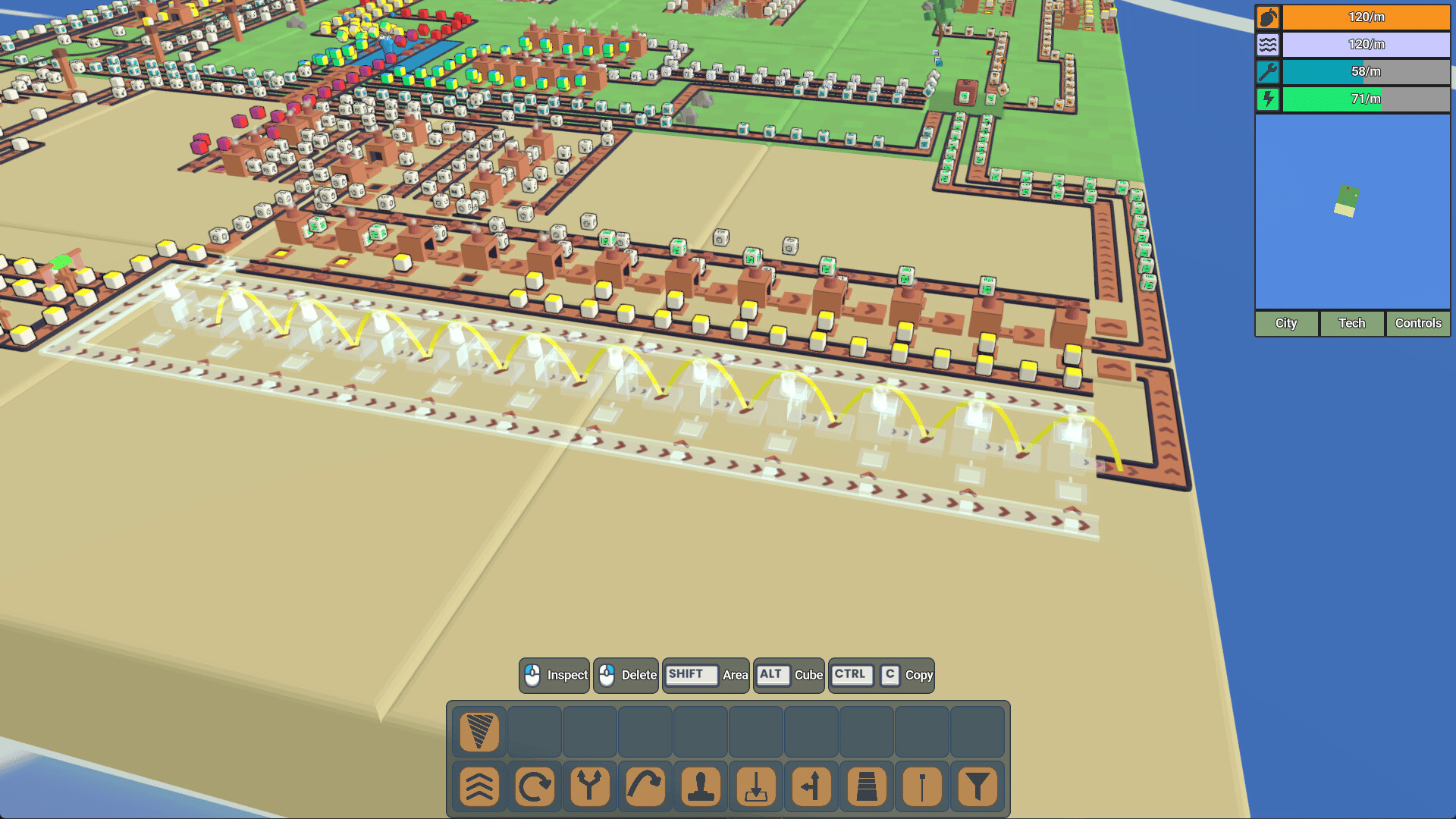 Create the ultimate cube processing factory on an island that grows with your base! Progression is tied to your rate of production, so you'll face lots of scaling challenges as you work your way through increasingly difficult production chains. No enemies, no time limit, pure automation goodness.