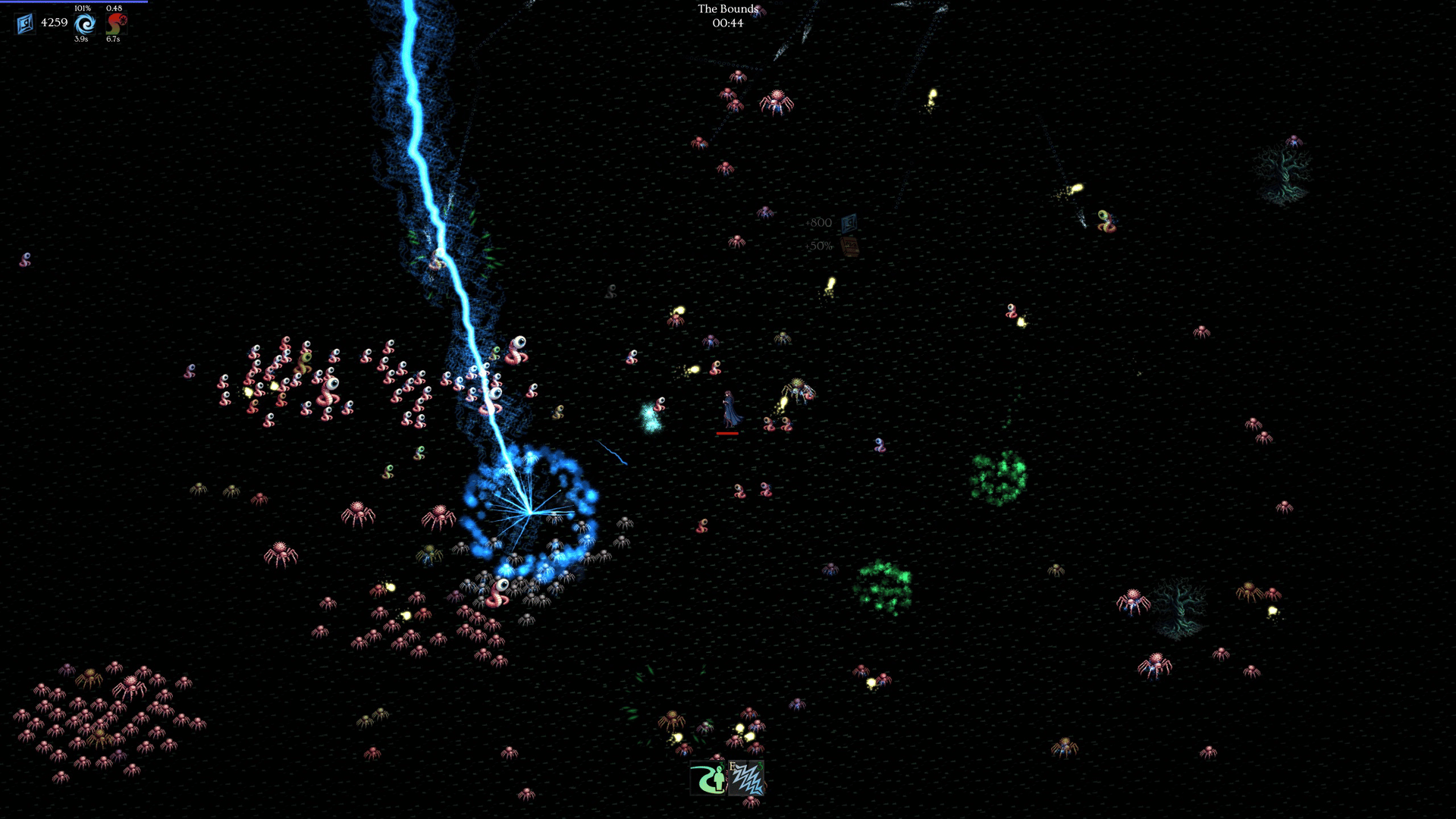 Overcome a series of challenging stages in this roguelite horde survival game by developing your power with autocasting spells across many different dimensions, including items, upgrades, talents, and more that interact with each other to produce many unique and powerful builds.