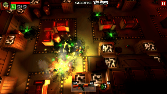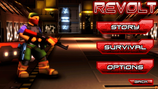 Revolt is a 3D dual stick shooter set in the future, where a devastating virus has wiped out most of humanity, and machines have risen up to exterminate the remains of the population. You must take control of Guy, a resistance fighter who has infiltrated into enemy territory, to battle against the robotic hordes and blast through a series of sabotage missions deep in the underground catacombs of a robot factory and beyond. Turning the enemy's technology against them, you'll wield powerful weapons to fight your way to the heart of the cybernetic machine core to discover the source of the deadly virus and uncover who or what is behind the plot to wipe out mankind.