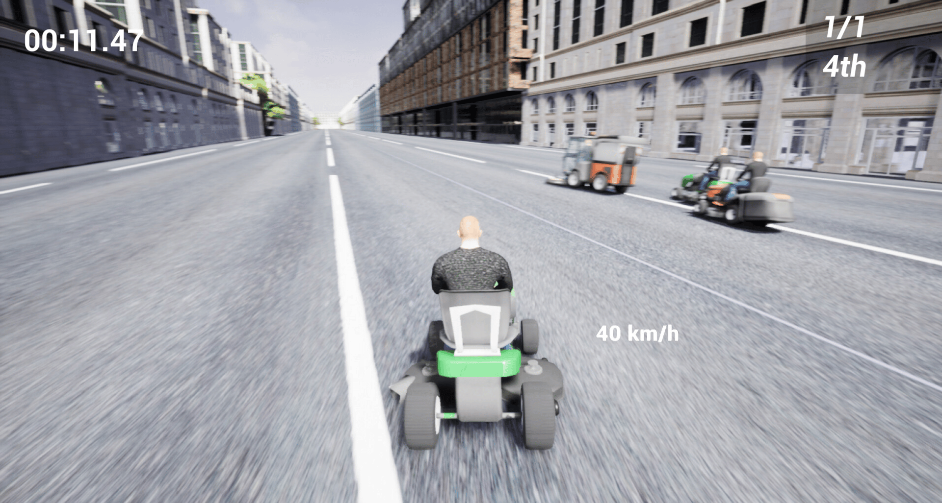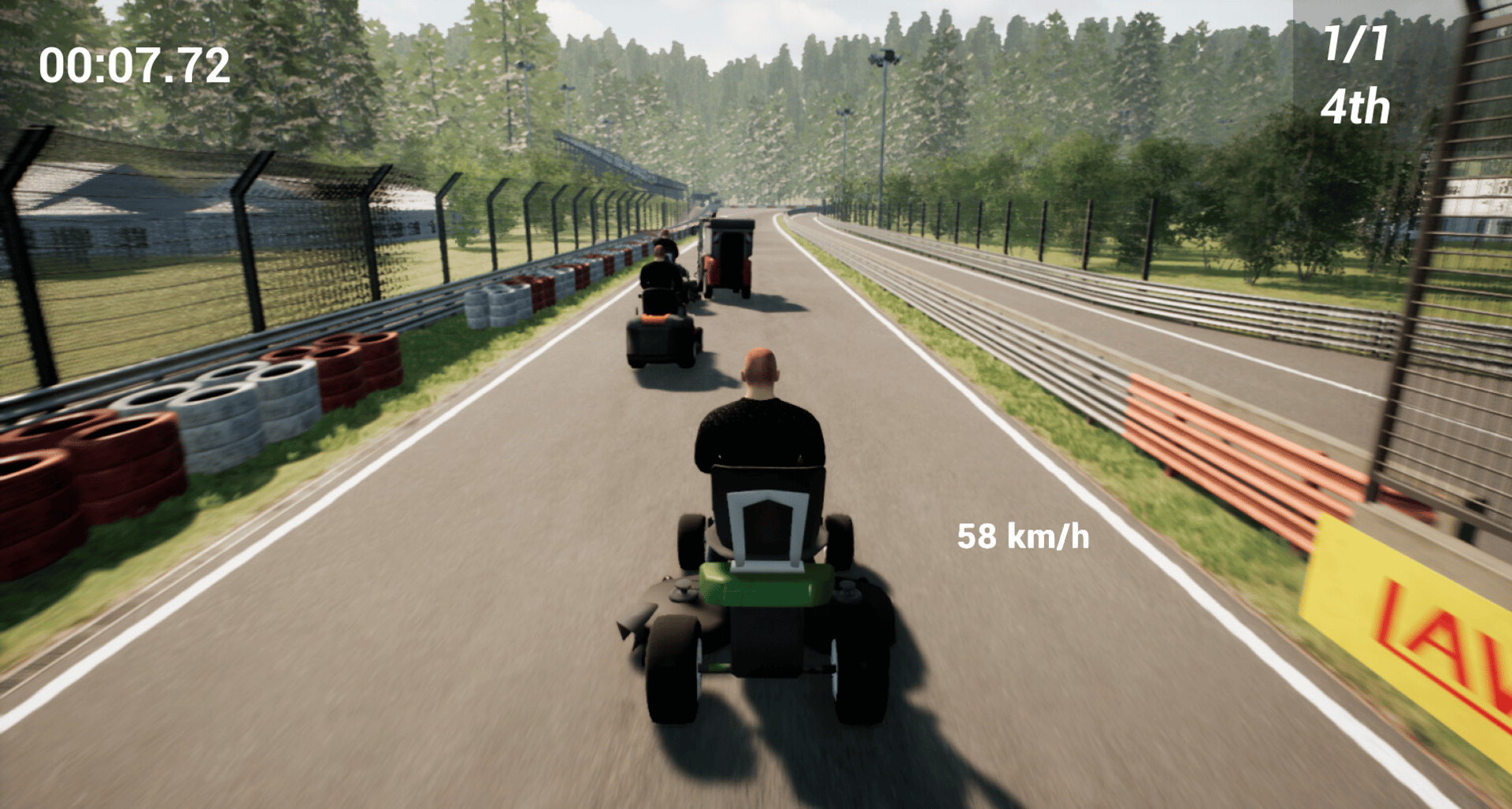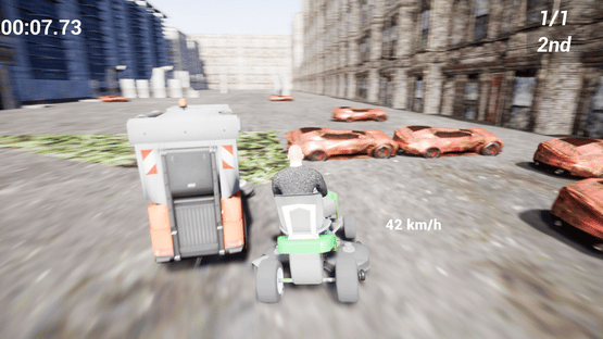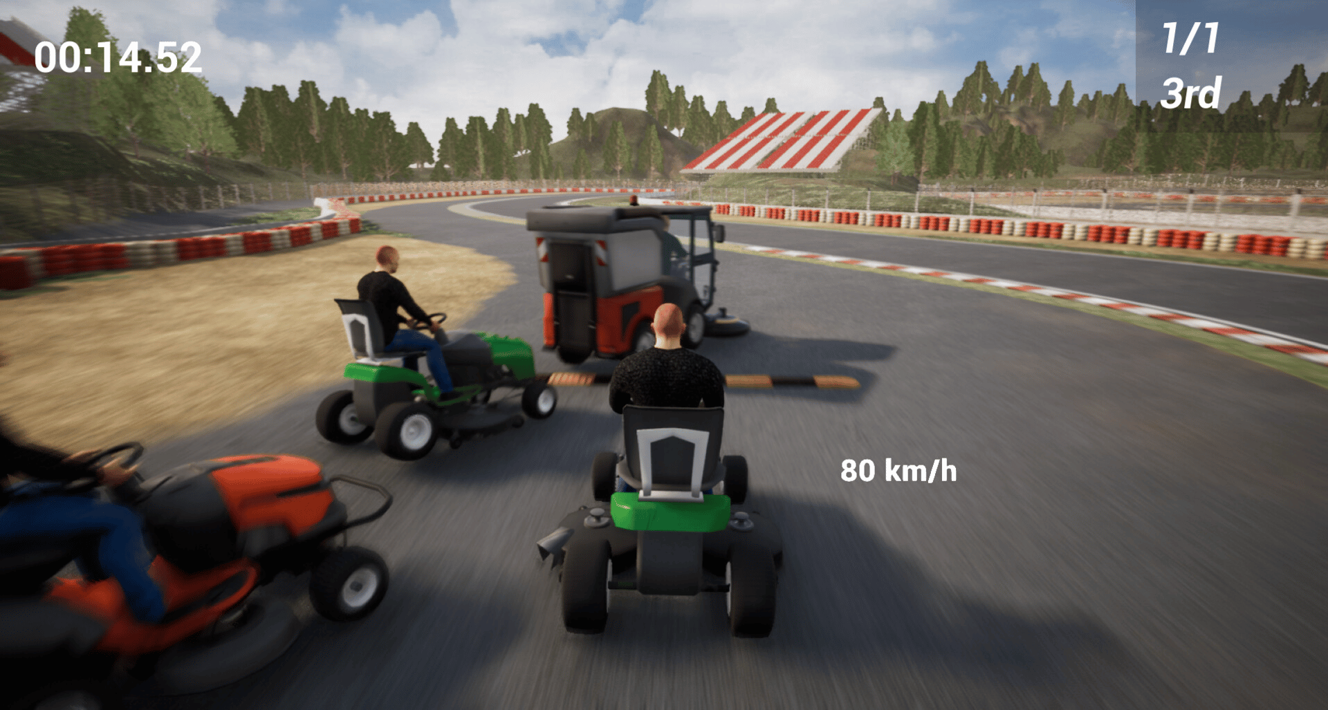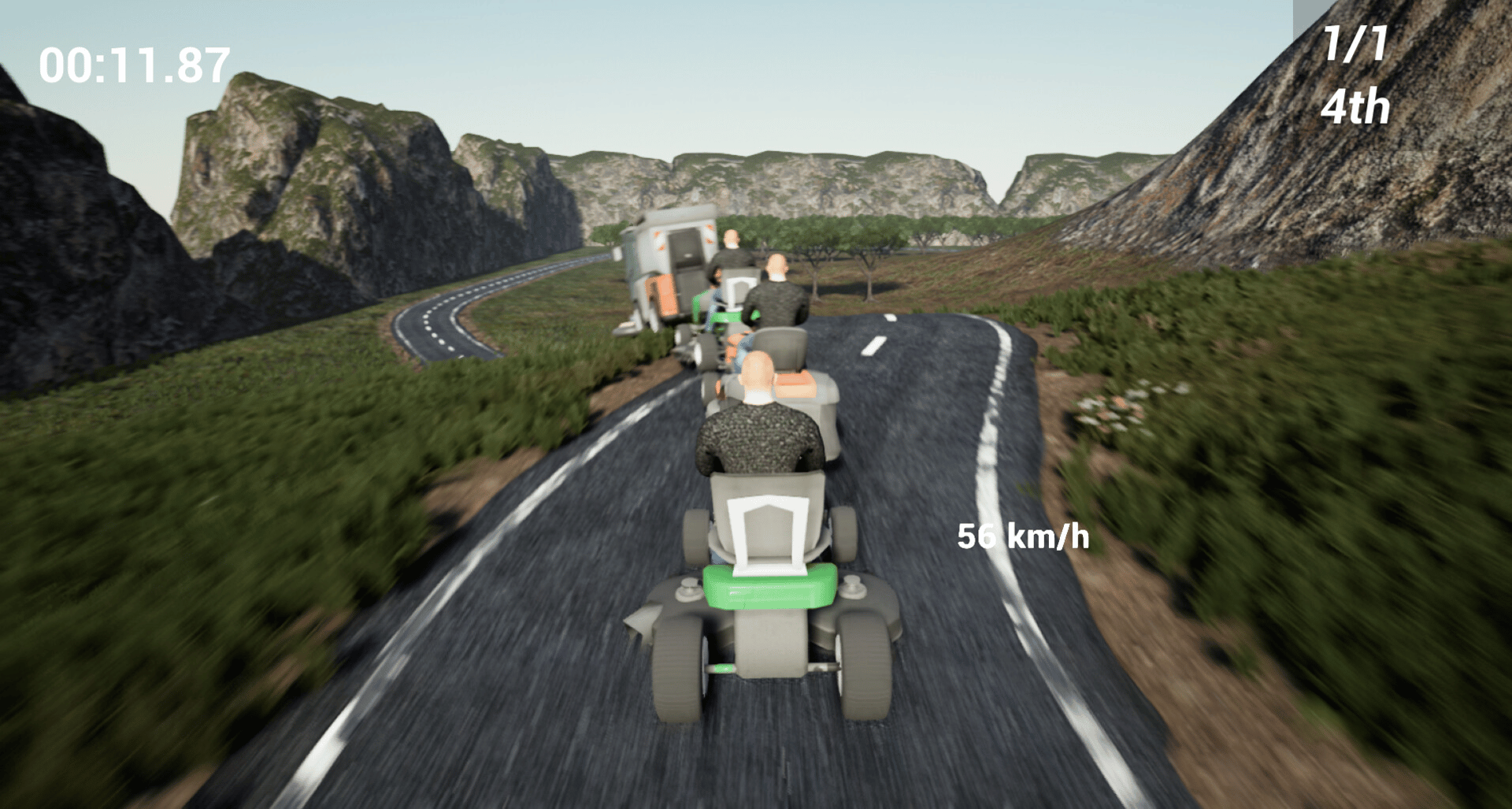 Sequel to lawnmower racing game. Drive now against stupid ai opponents in this world slowest racing game. Try to finish tracks and collect achievements