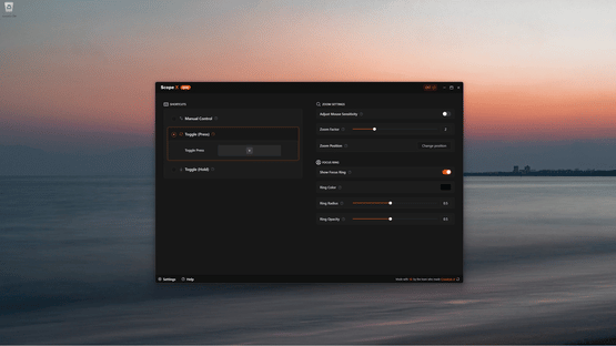 Add a customizable zoom lens and focus ring overlay to any game. Toggle instantly with your own keybinds.
