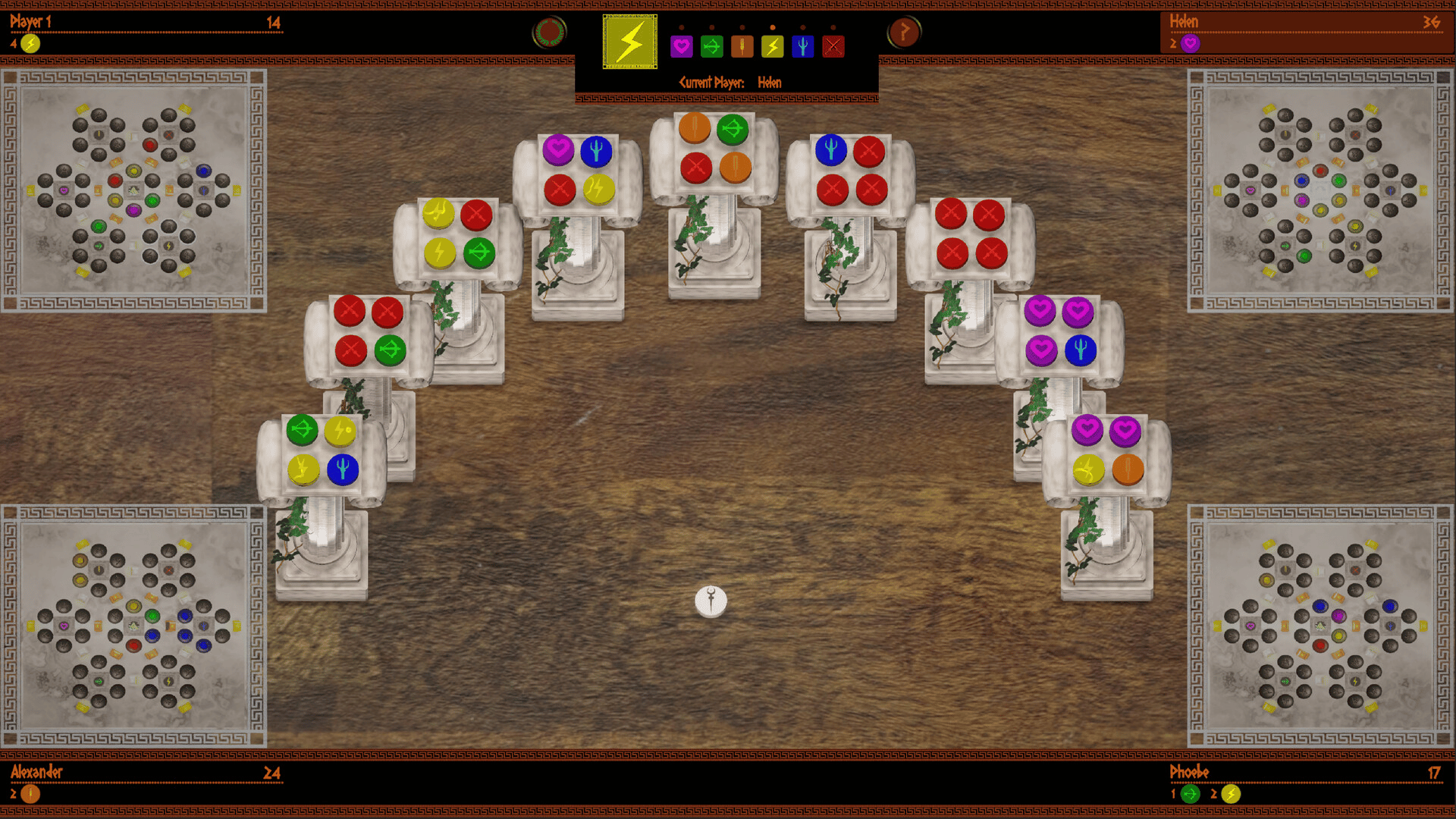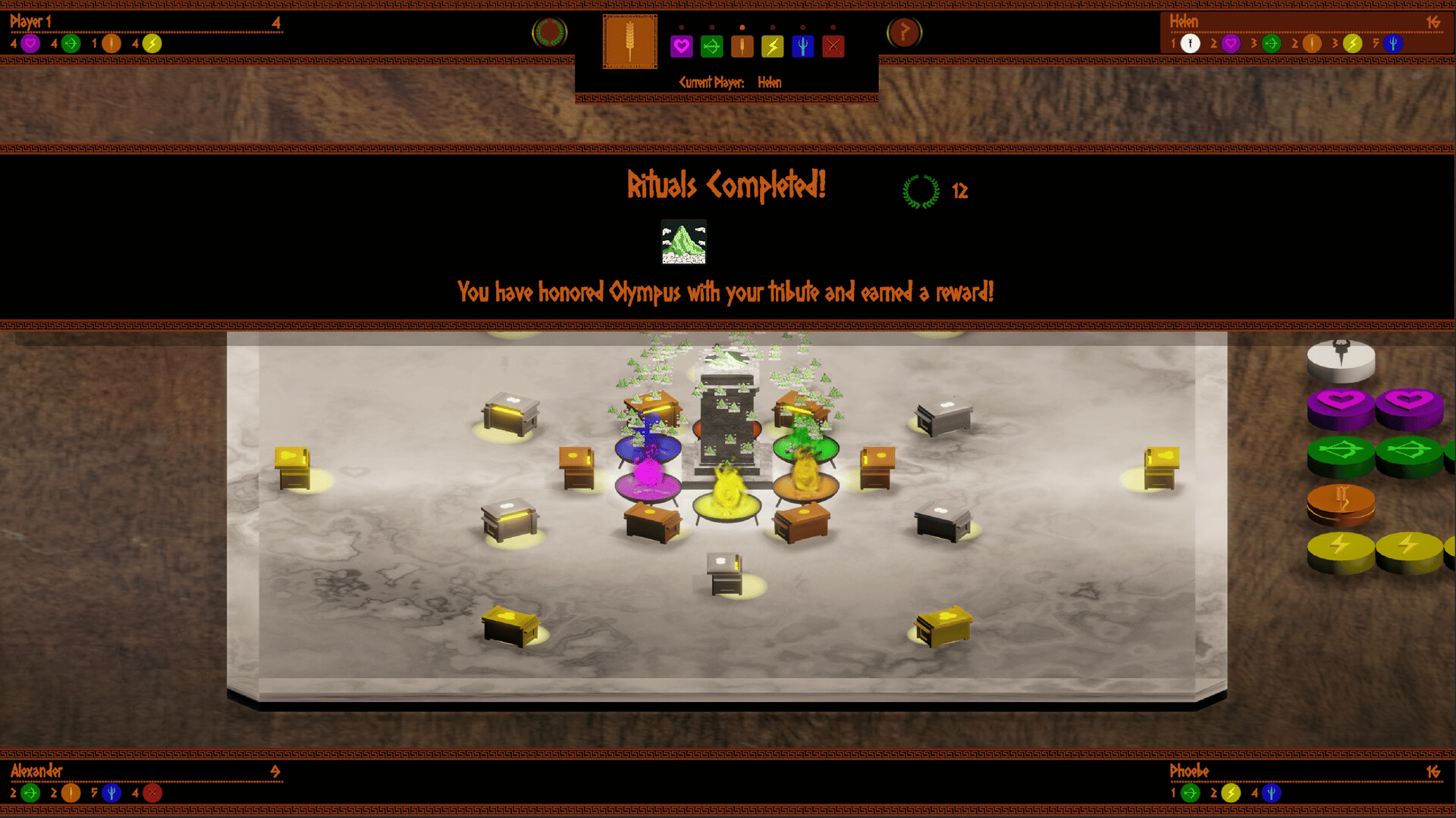 Olympia: Festival of the Gods is a digital board game where players collect tokens in order to perform rituals to honor the Gods of Ancient Greece!