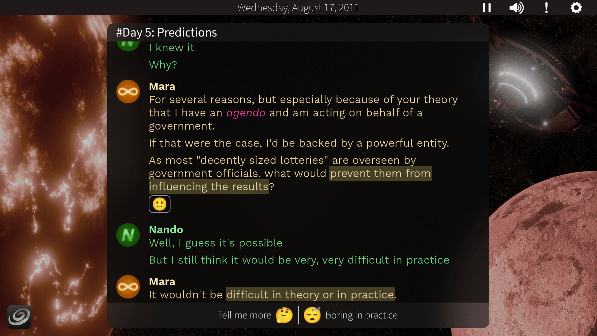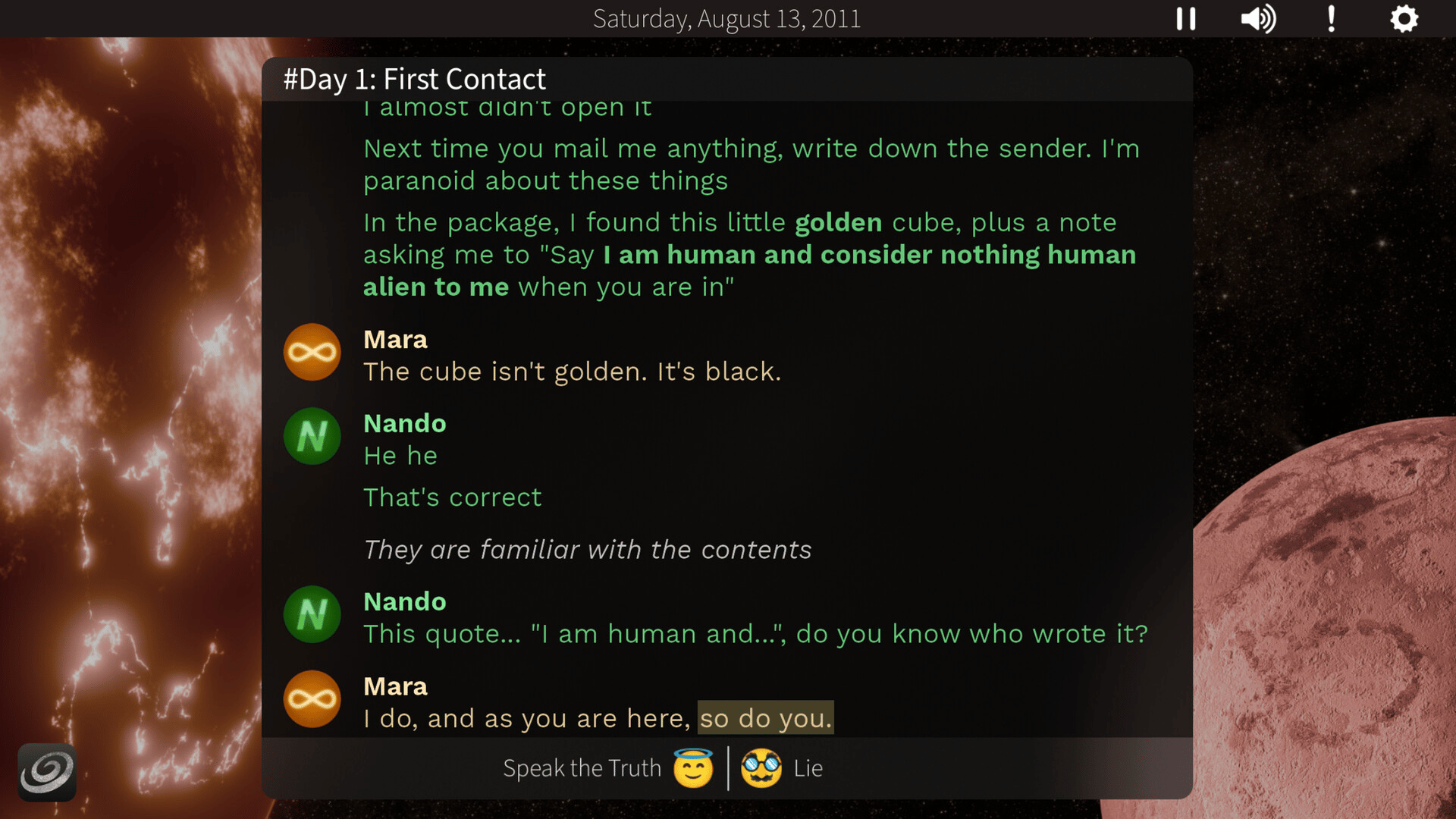 Shape humanity's future in a sci-fi narrative game where choices matter. Experience an extraterrestrial contact while deciphering an overarching mystery of far-reaching consequences. Who is the Outsider?