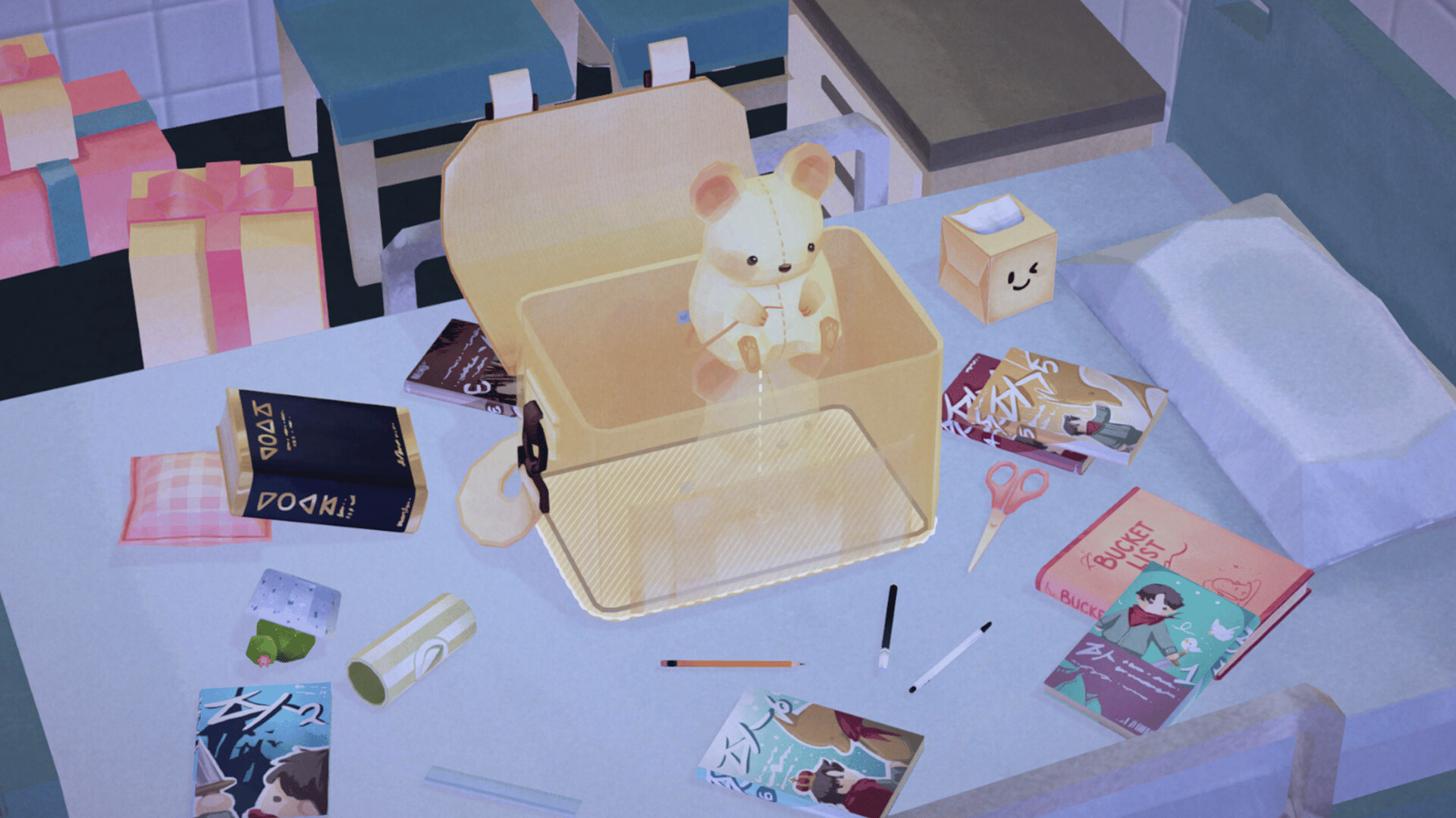 "Packit List" is a short, 3D organizing puzzle game that takes about an hour to complete. You will follow the wonderful adventures of Hana, a high school girl who travels across multiple worlds to organize various themed objects in a limited space