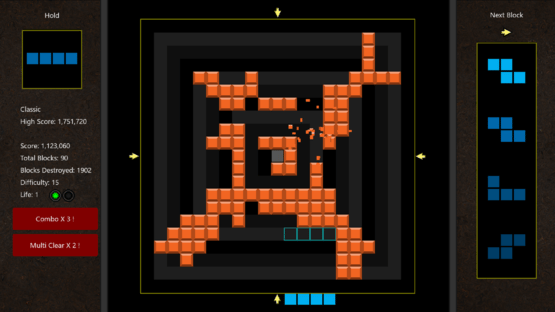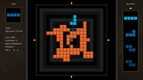 Midtris is mind bending puzzle game where your goal is to place blocks around the center piece and clear layers of perfect squares.