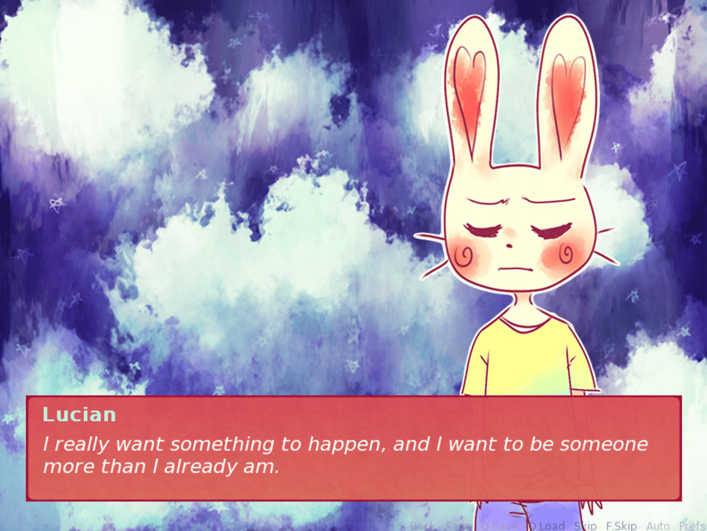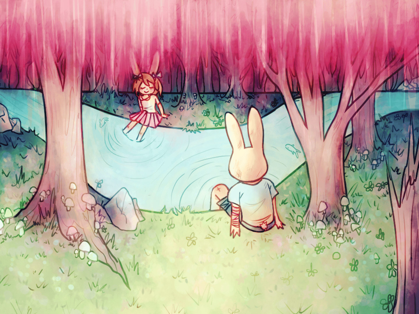 A short story about a cute bunny town far away from the rest of the world around them, and a cute bunny boy wanting to experience more. He leaves behind his calm life and loved ones for one of mystery and adventure.