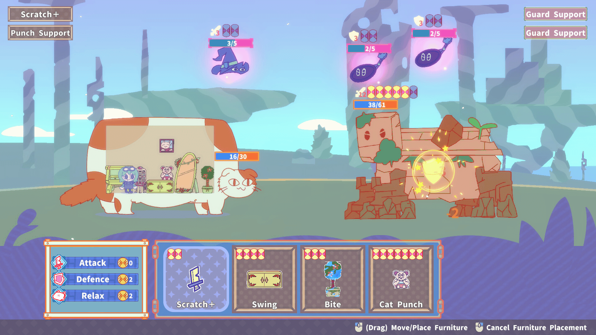Hounimal is a roguelite command battle RPG where you journey with Hounimal, a reliable companion and your home. Place colorful and powerful furniture to build the best Hounimal!
