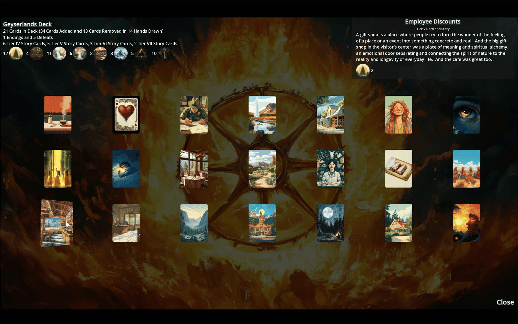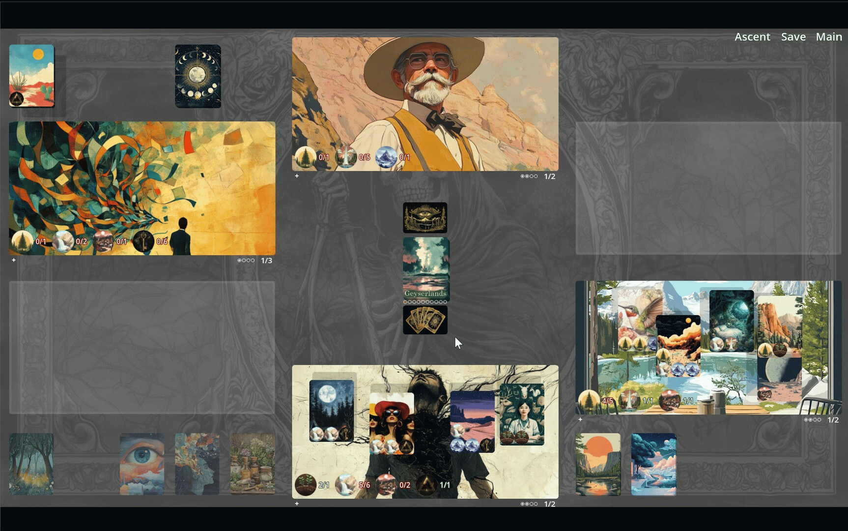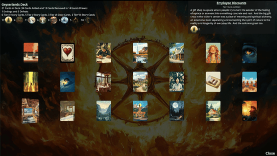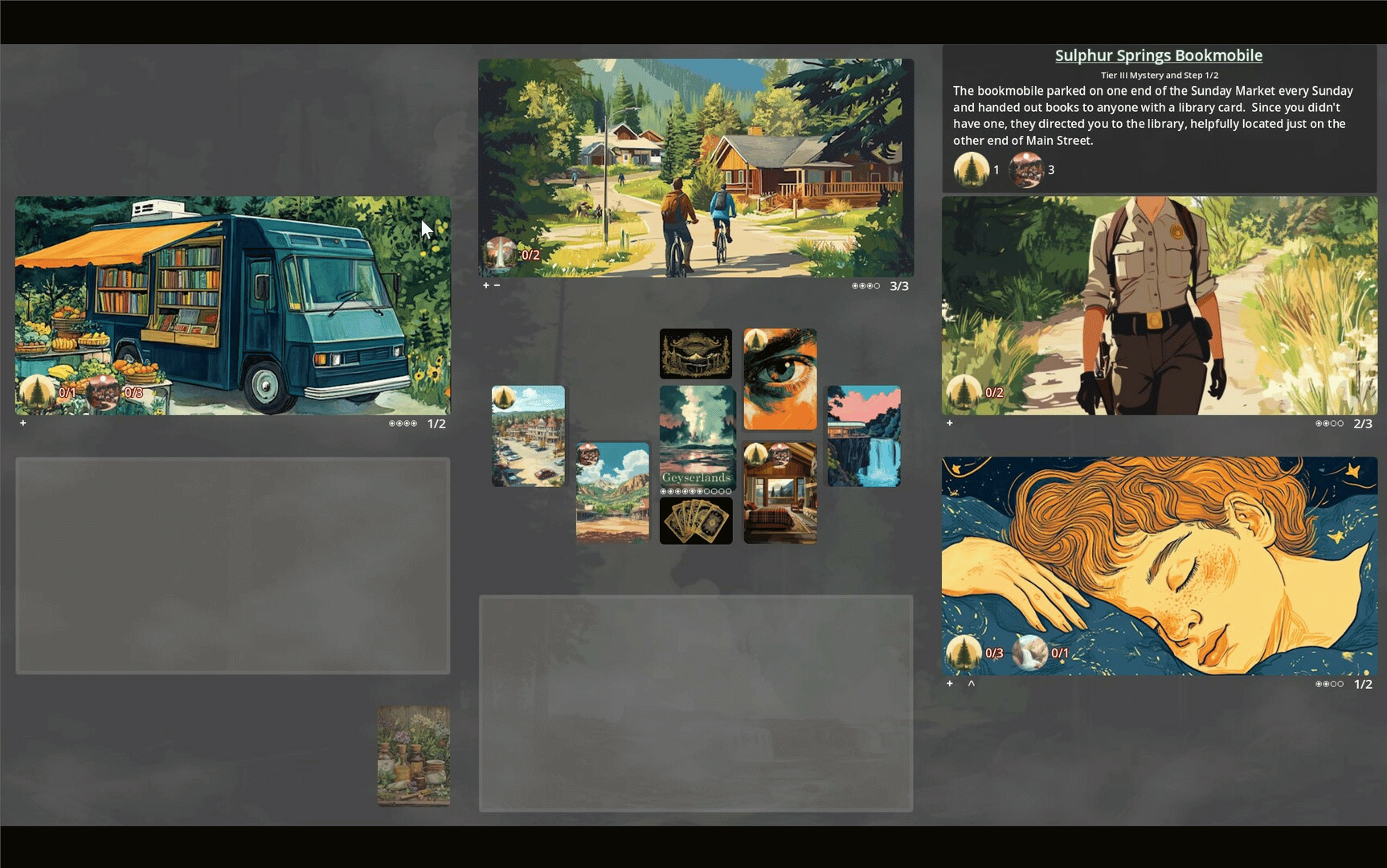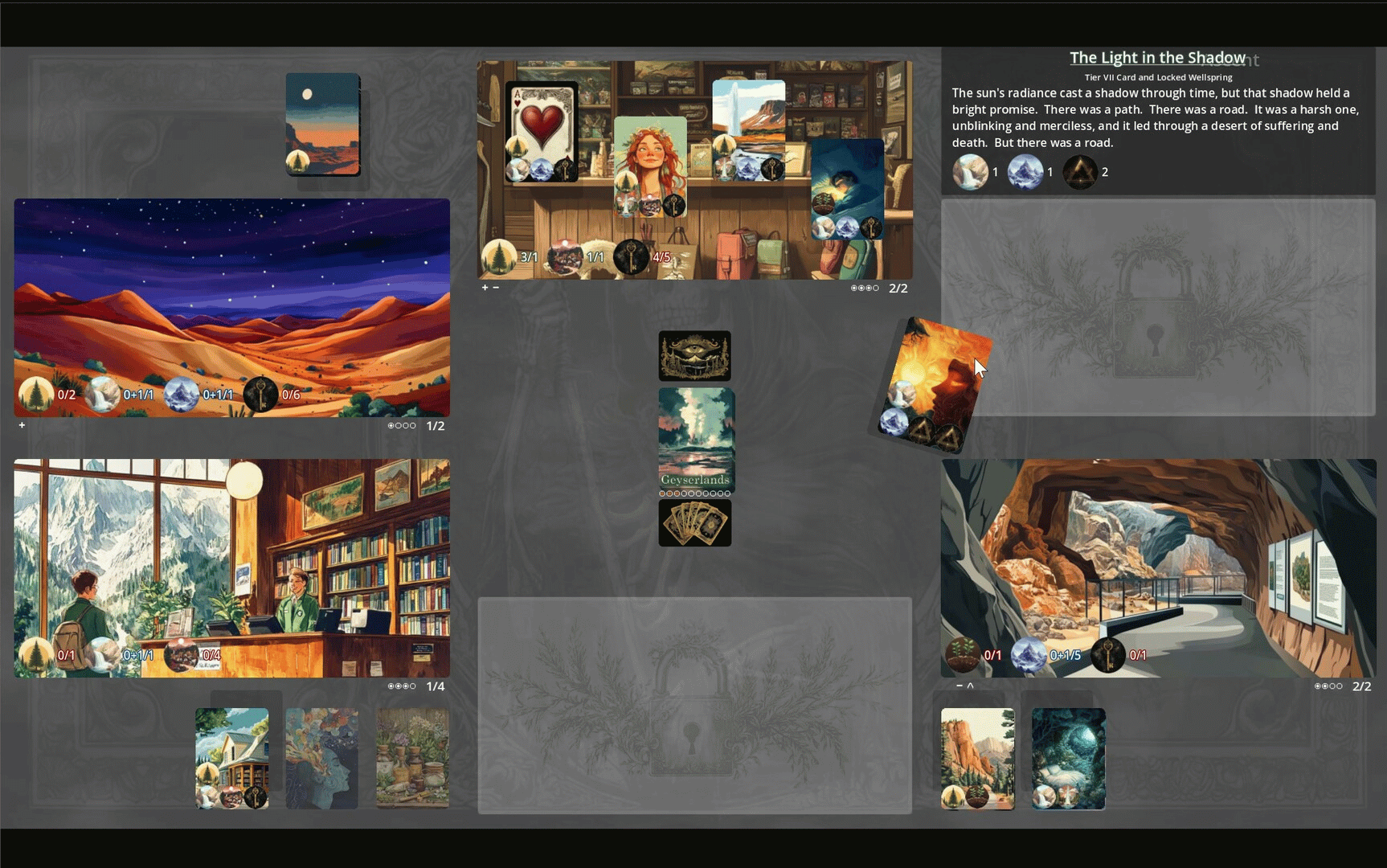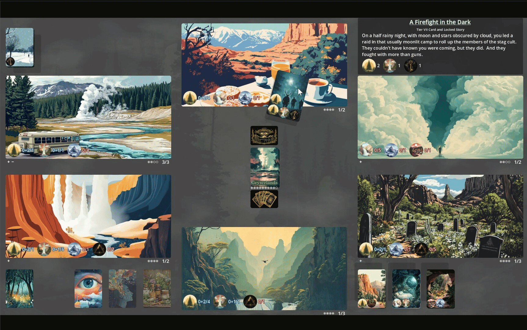 Geyserlands is a deck-building game of modern otherworldly mystery. Gain new cards and upgrade your deck as you explore the mystery of Geyserlands. Unlock secret powers and gain special advantages. How will your story end in Geyserlands?