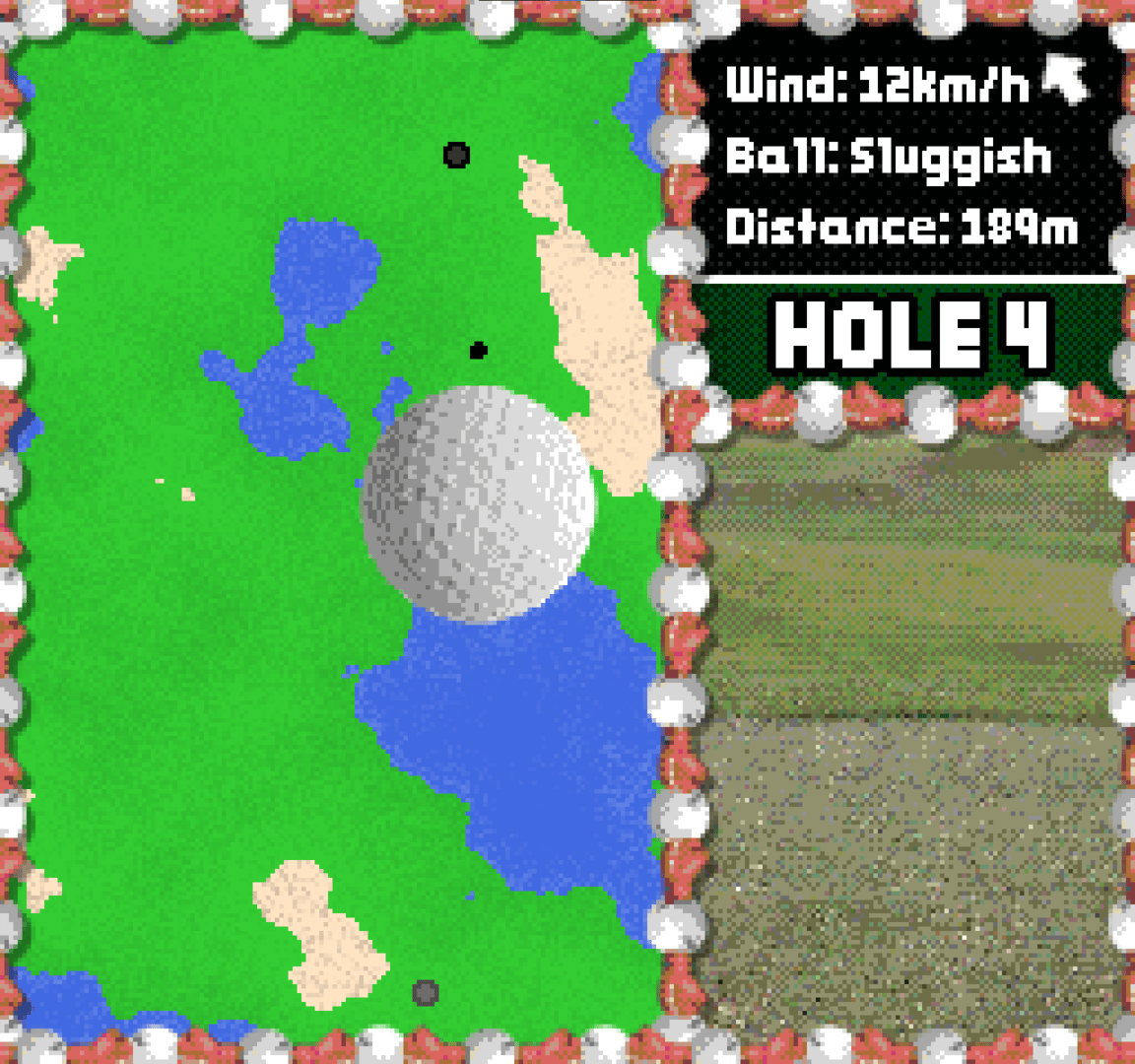 Two polar opposite sports meet at last - it's Bolf! Box your golf ball and try to hit it as close to the hole as possible - only one stroke per hole. Watch for wind, water and bunkers - careful not to get knocked out!