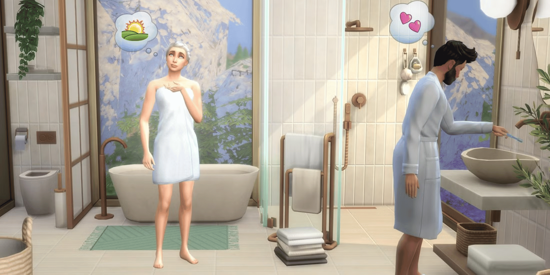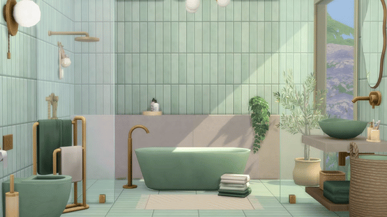 Give your Sims a serene, modern bathroom featuring minimalist design and refined details with The Sims 4 Sleek Bathroom kit*. This collection brings a soothing vibe with a sophisticated aesthetic. The combination of clean lines and natural materials strikes a harmonious balance between warmth and elegance. Soft pastel tones blend effortlessly with brushed metal accents, while touches of greenery breathe life into the space, transforming any bathroom into a polished sanctuary. Created by Syboulette.