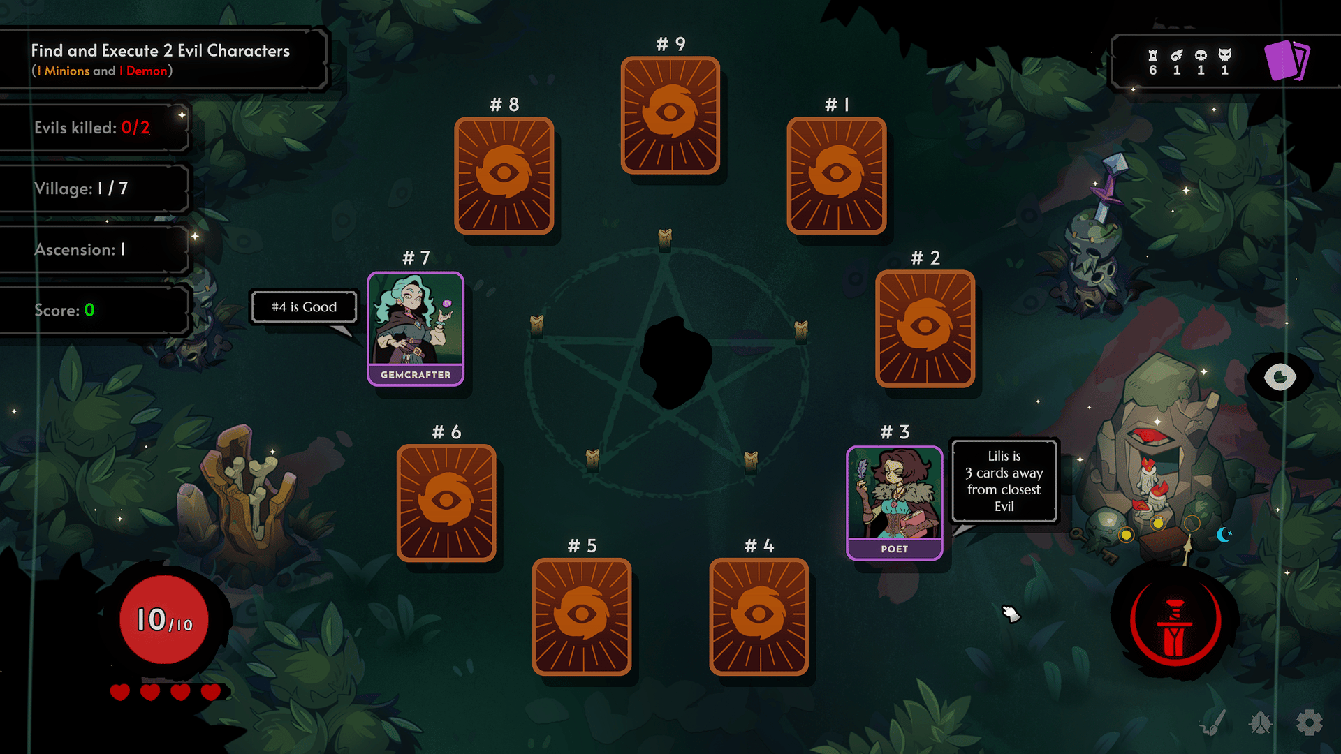 The cards lie! In this single-player social deduction game, demons have infiltrated your village and disguised themselves as allies. Every card you turn over is either a friend or a foe. Can you see through their bluff?