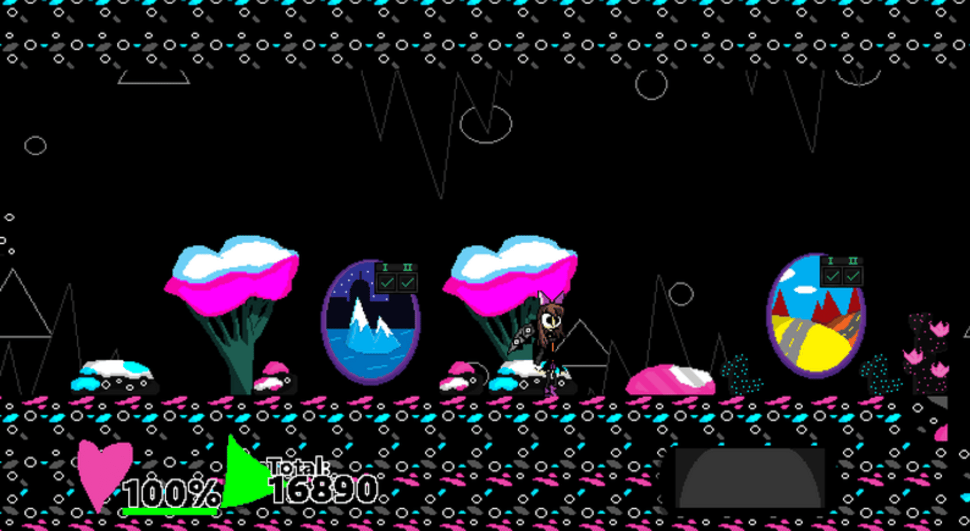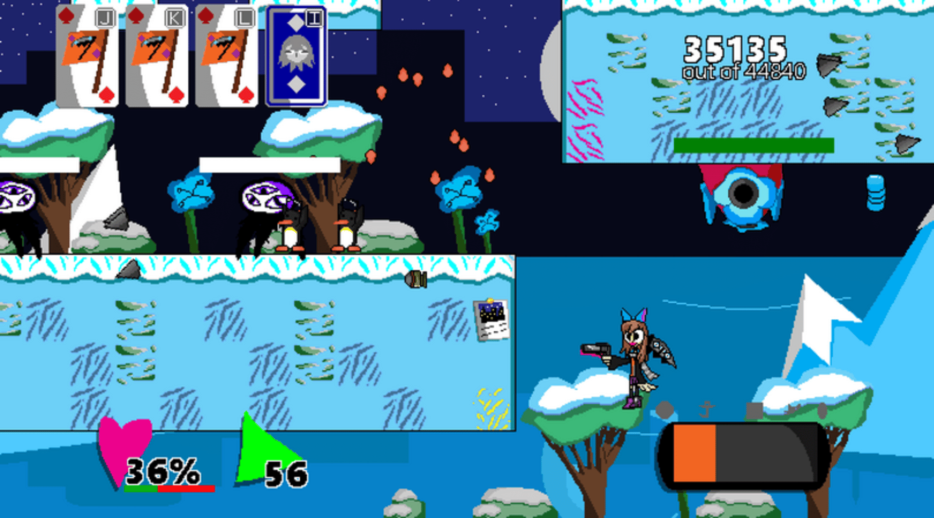 As Archa, fight enemies with your scythe Anubis, use your cards, and collect items and shards to raise your score and get the Interdimensional Pumpkins or Carrots in this upcoming Bullet-Hell Platformer! Archa is a 2D platformer all about movement, combat, exploration, and score! To complete a level, you must gather a certain amount of points, and find the exit. Points are given by collecting and attacking enemies.