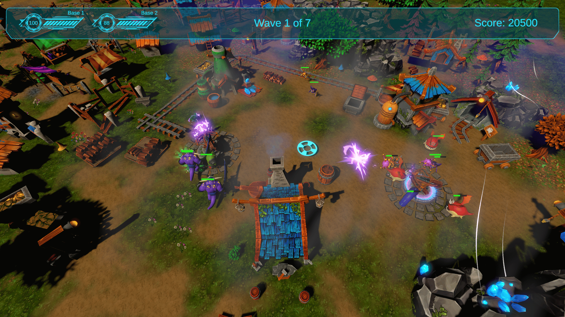 Attack on Inirea is an arcade-style shooter for PC, Mac, Linux and Steam OS. The player is tasked with defending the peaceful village of Inirea from hordes of monsters, gaining points and powerups as you progress through the maps.