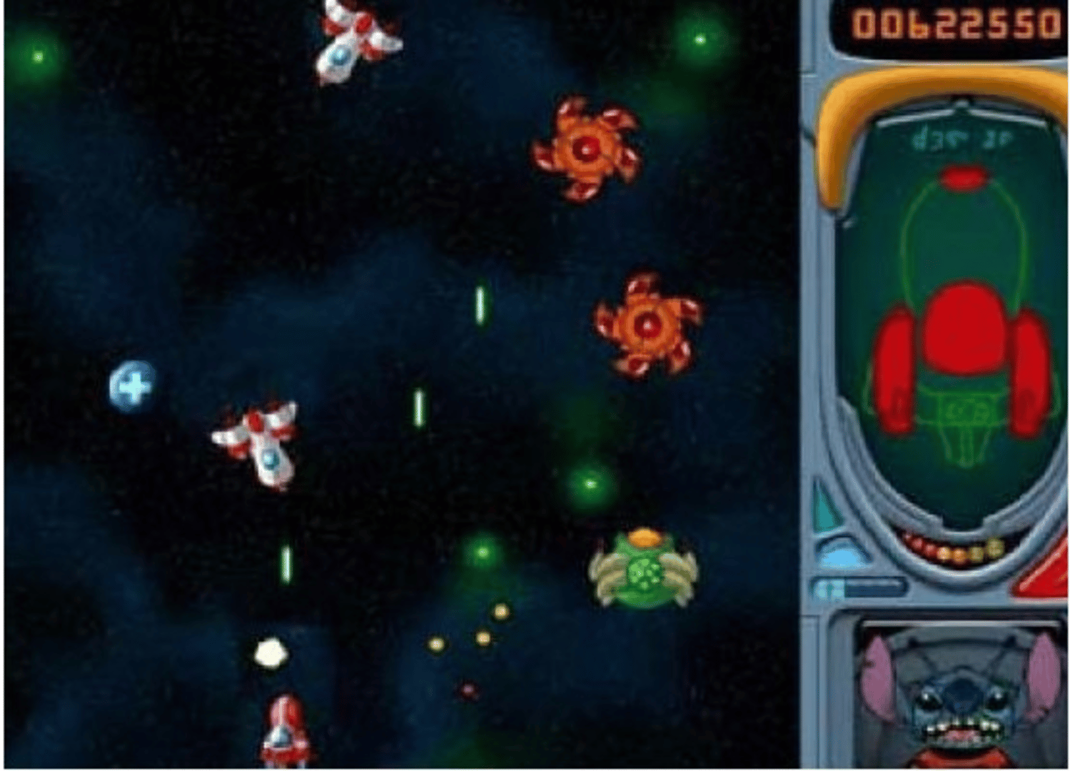 Start up Stitch’s spaceship and battle hordes of enemy star fighters. Get shields and power ups to defeat big bosses and destroy the Blastar Battle Station! Help Stitch save the galaxy in this out-of-this-world arcade action game featuring the intergalactic manic mischief-maker star of Disney’s Lilo and Stitch.