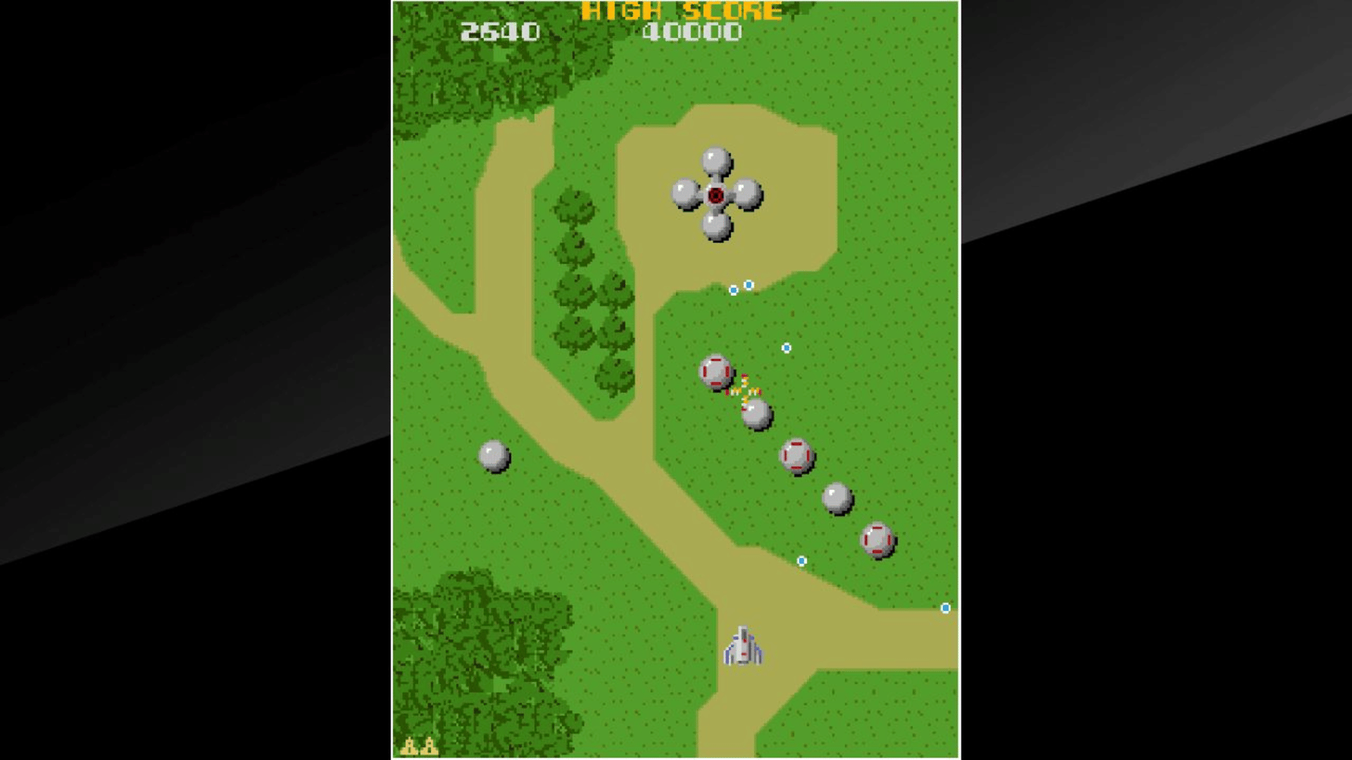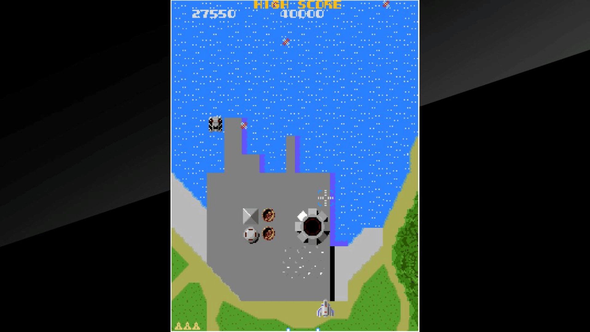 "SUPER XEVIOUS" is a shooter released by NAMCO (Bandai Namco Entertainment) in 1984. Players pilot the SOLVALOU and face off with the XEVIOUS forces. Defeat airborne enemies with the zapper, and terrestrial enemies with the blaster. This work has various changes from the previous work, including additional characters and different placement of hidden items.