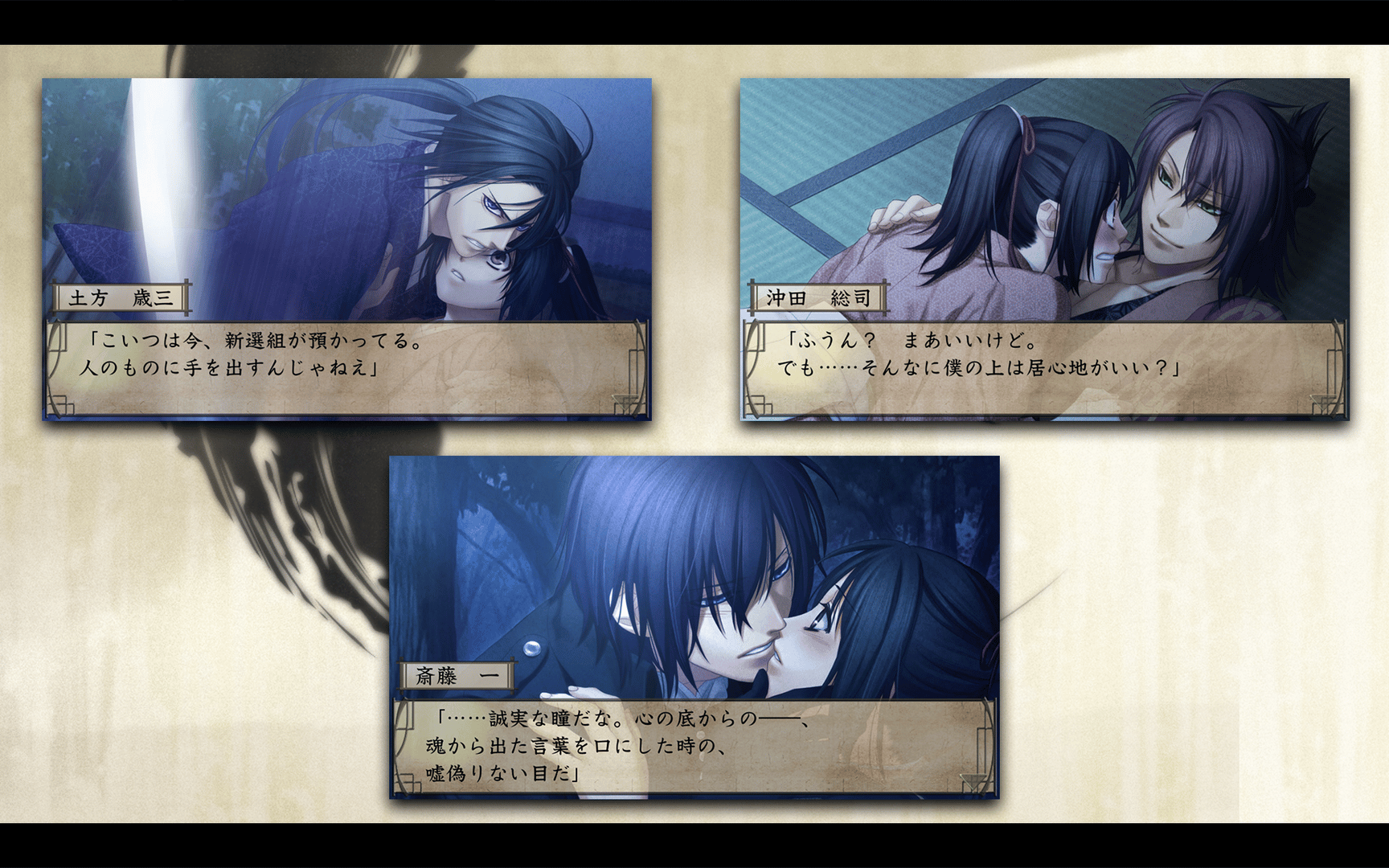 A mobile port of the PSP edition. It contains a new exclusive scenario called "Tea ceremony event". There are two app versions: Simple edition and Premium Edition. In the first, the prologue is playable for free and each chapter must be purchased. The new scenario is available upon purchase of all main episodes in the Simple Edition, but is available right from the start in the Premium Edition.