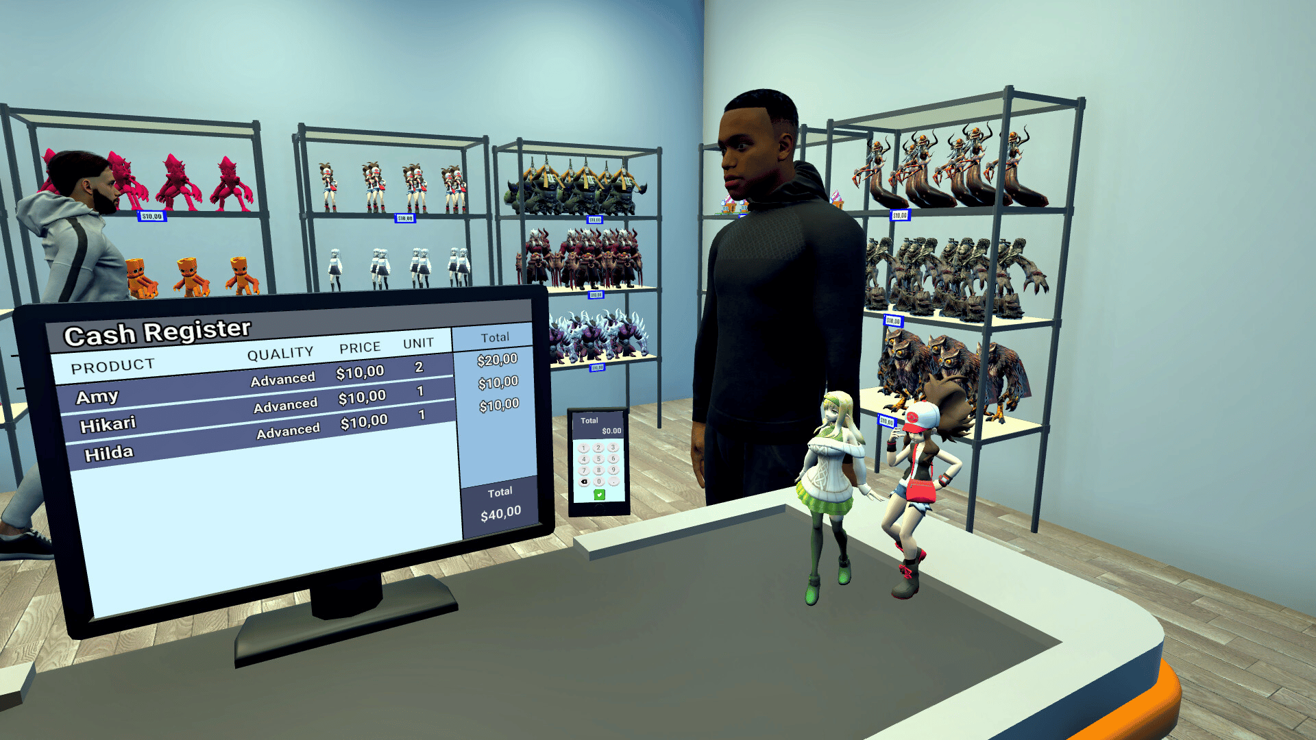 Run your own figure shop! Produce figures with 3D printers, stock your shelves, set prices, and offer the best shopping experience to your customers. Manage your storage, expand and design your store. Try to complete collection sets, follow market trends, and grow your business!