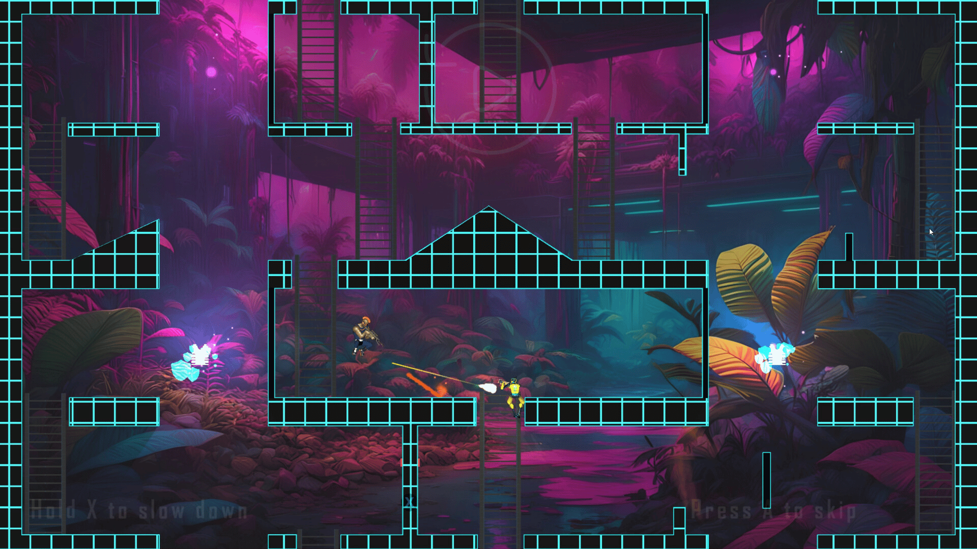 Noir Total is a 2D local multiplayer PvP shooter set in darkened arenas. Sneak through total darkness using your controller's vibrations, track down your enemies, collect bonuses and set traps to stay one step ahead of your opponents in fast-paced, competitive matches for up to 4 players.