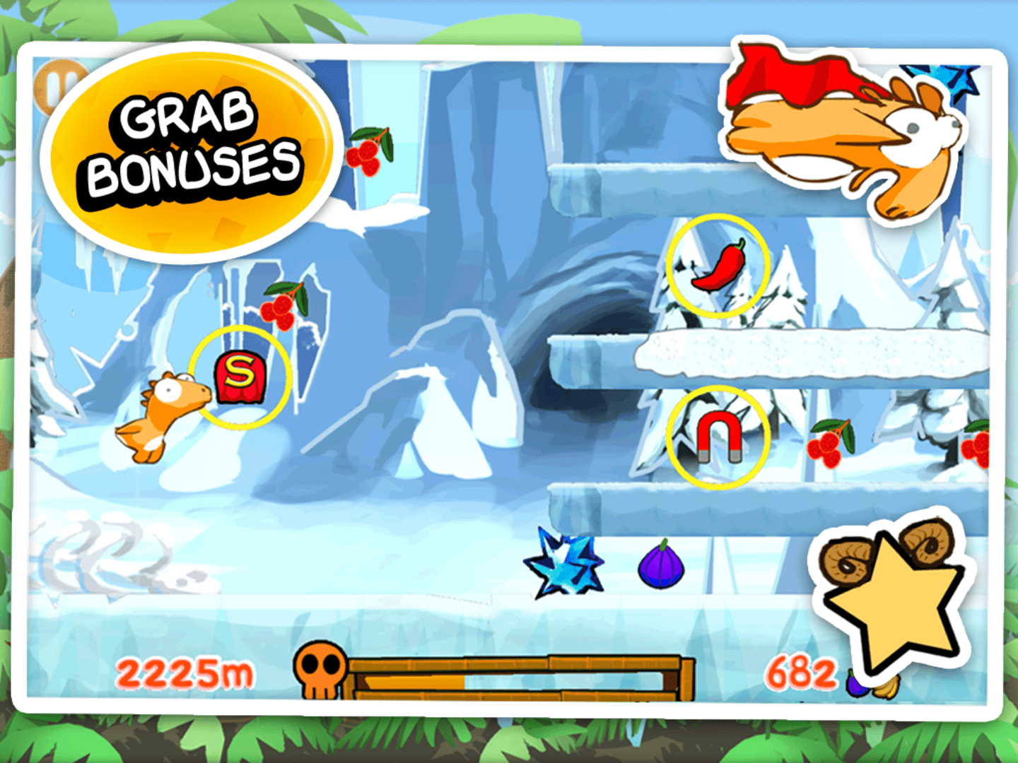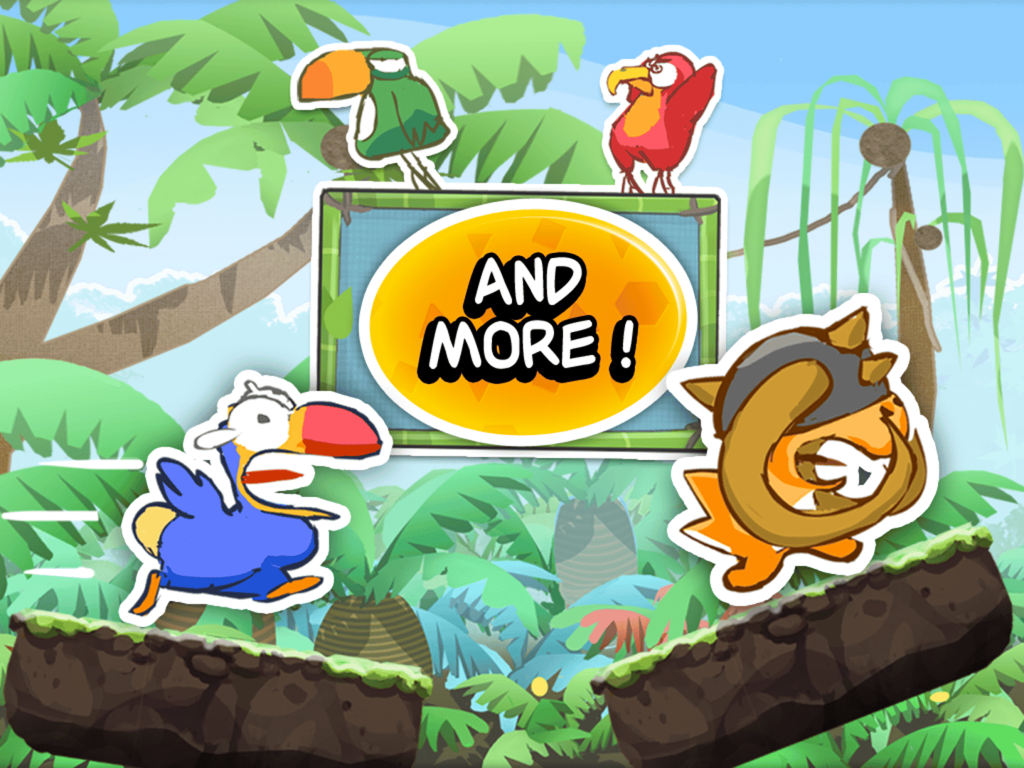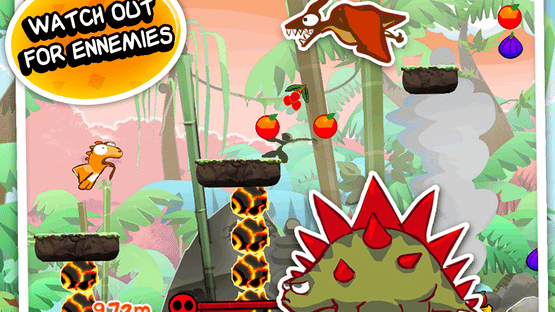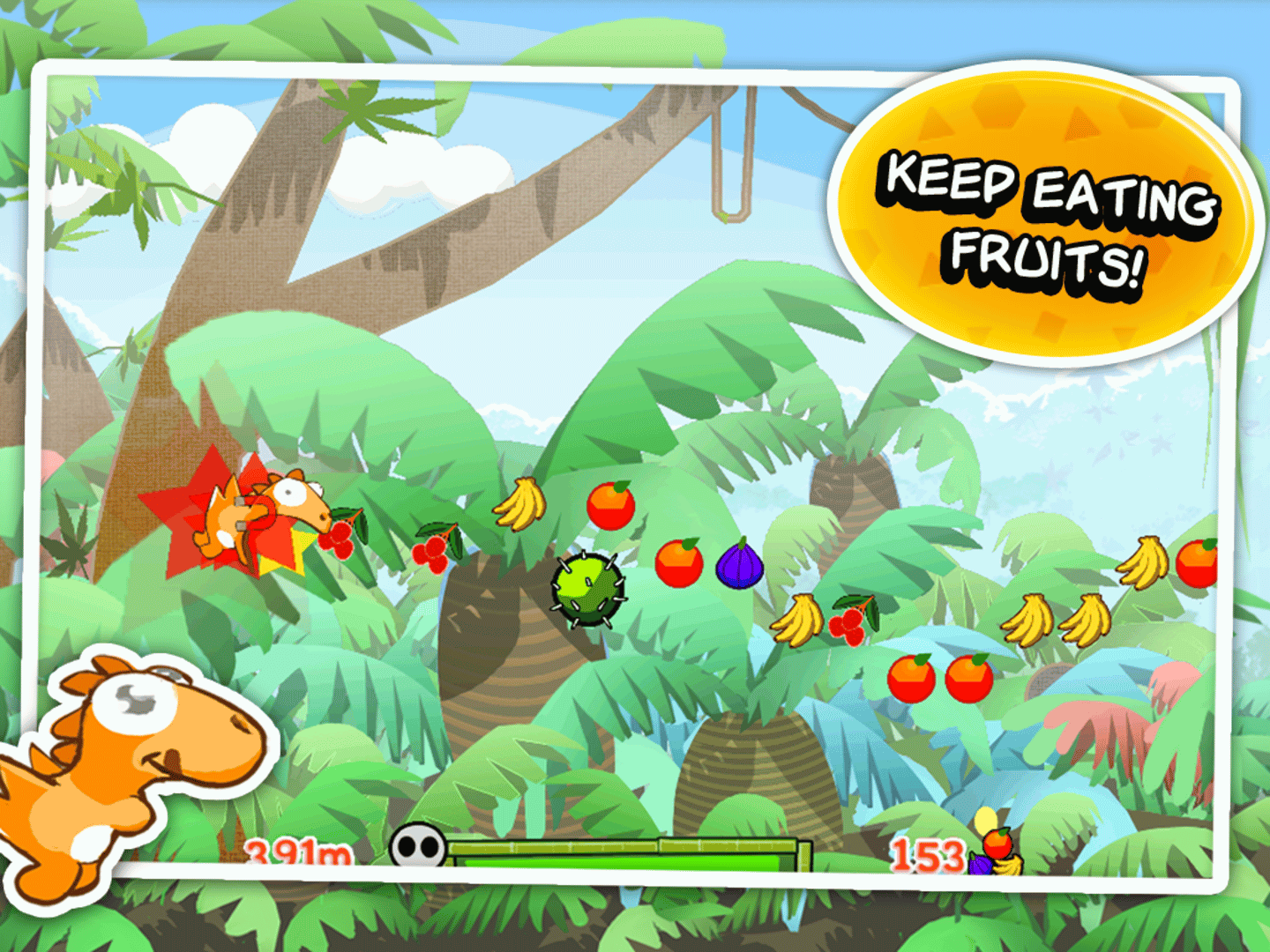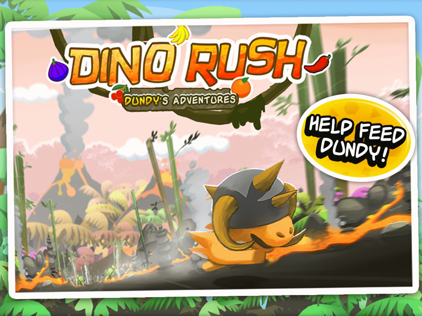 An egg has just hatched in prehistoric time and a small dinosaur has emerged… and he's hungry! Help Dundy the dinosaur make his way through tropical wildneress! Tap to get Dundy to jump over obstacles, predators, melting lava or even quicksand. Score by eating loads of fruit to help Dundy survive and reach for power-ups to give him special abilities. You can make Dundy fly, run, or even smash up adversaries… but whatever you do, remember to keep feeding him fruit along the way or he'll loose strenght and starve!! Both skill and determination will be needed to survive this fruitfull adventure. Boasting superb graphics, fantastic gameplay and great replay value, Dino Rush is an addictive and deliciously fun adventure for the whole family. So flex those fingers and get ready to save a dinosaur!