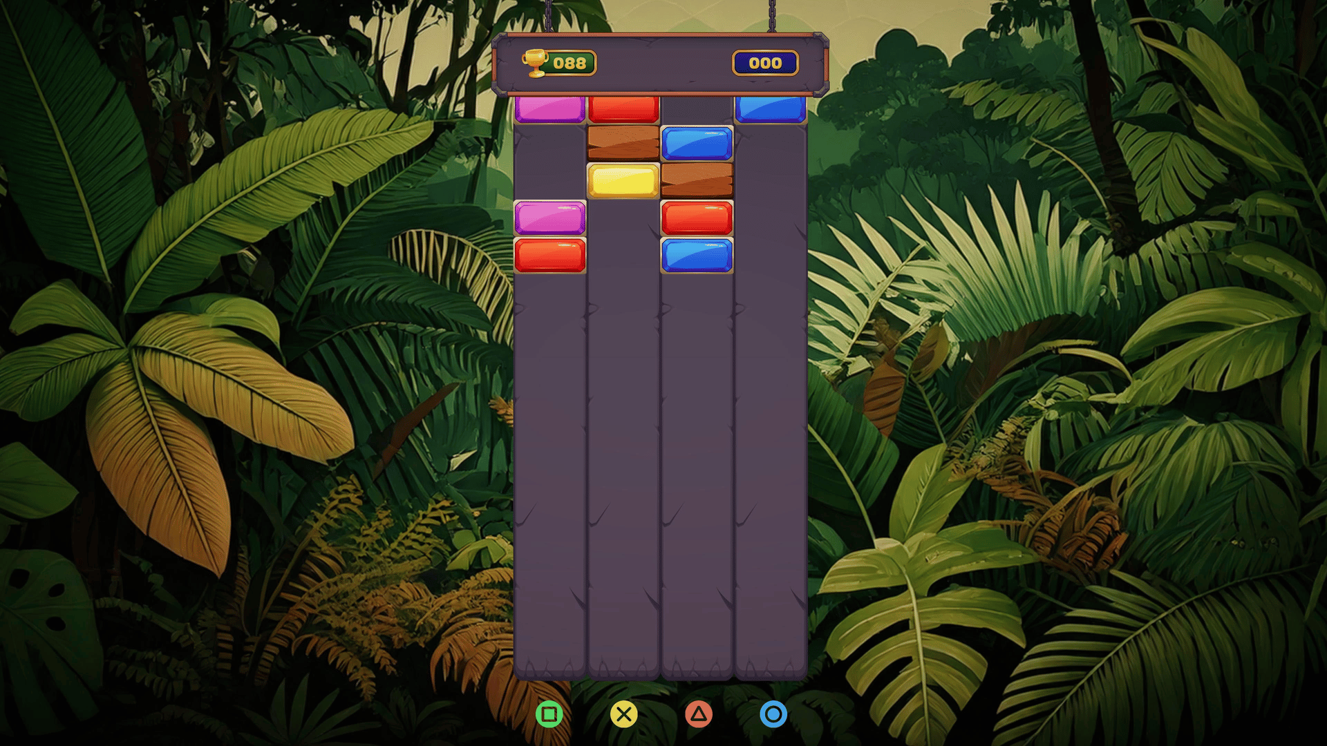 Gemstones Rush Mania is a fast-paced puzzle game where you drop square gemstones into four columns, aiming to align and clear full rows for points. The closest row to the player must be perfectly aligned to disappear, triggering combos if rows below are also aligned. Occasionally, wooden blocks appear, requiring two hits to break before the row can be cleared. As the game progresses, the speed increases, making it more challenging. How long can you keep up, and what high score can you achieve?