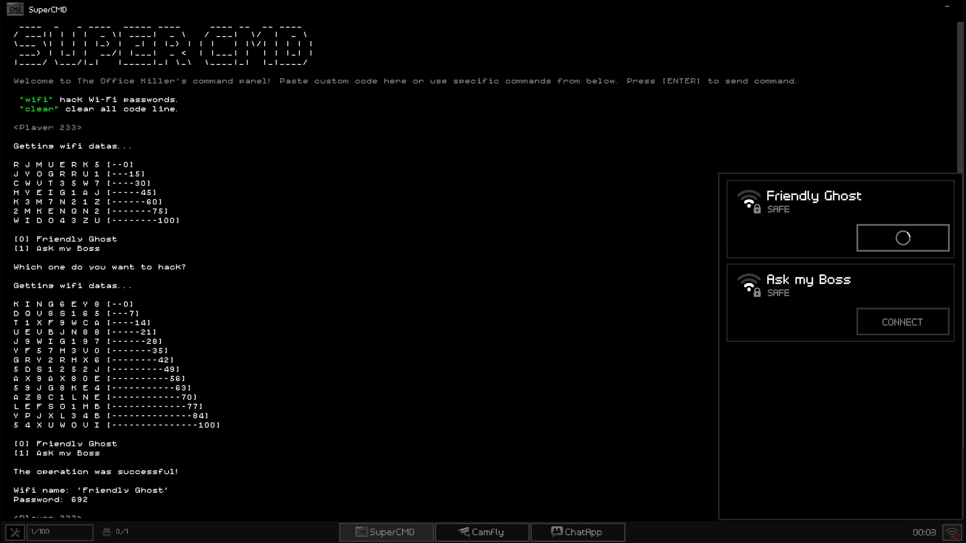 The Office Killer is a 1-3 player online co-op survival horror game. As a spy, your main goal is to complete the file transfer process containing the office's secrets while monitoring live surveillance camera footage. Can you survive the entire night or will you get caught by the killer?