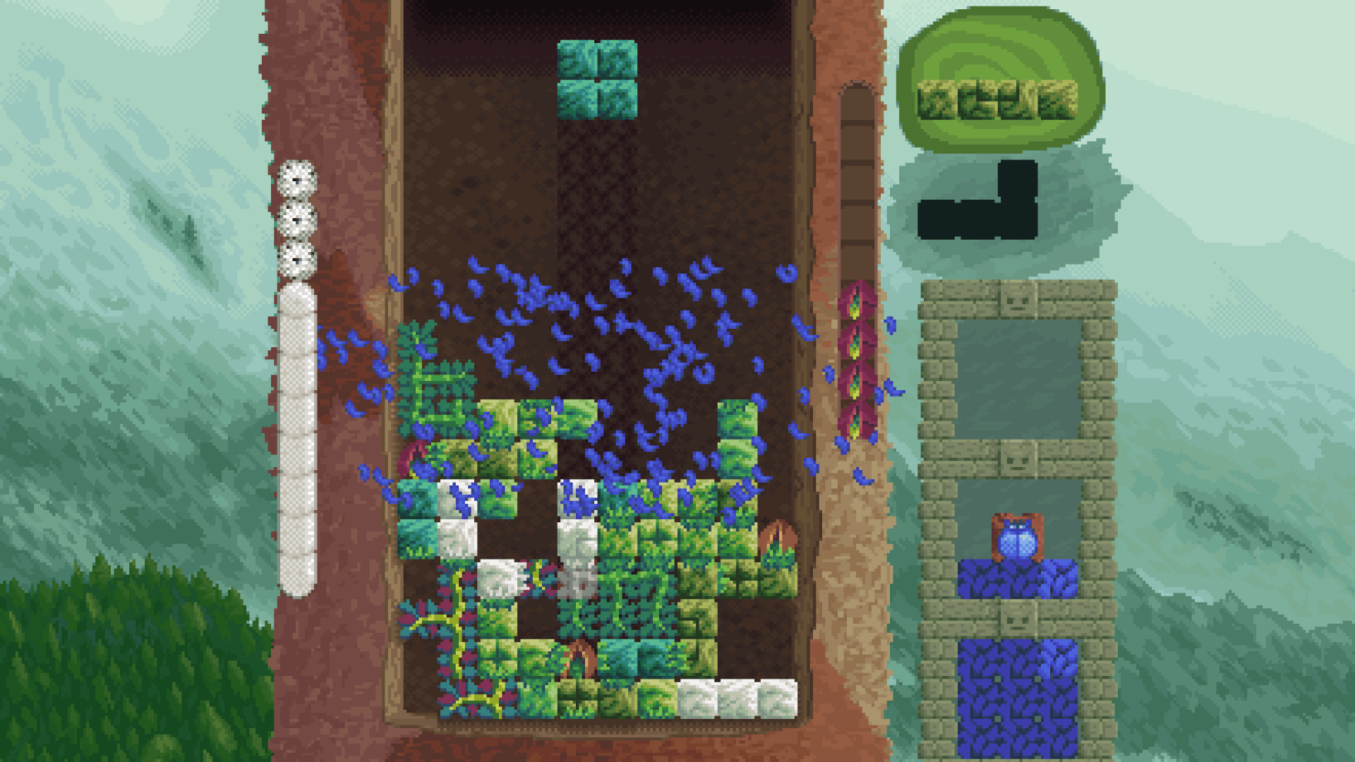 A fresh twist on the familiar block stacking formula where every piece sticks immediately on contact! Master the challenge of arranging tetrominos and strategically growing vines to fill gaps as the pace grows increasingly frantic in this sticky, nature-themed puzzler.