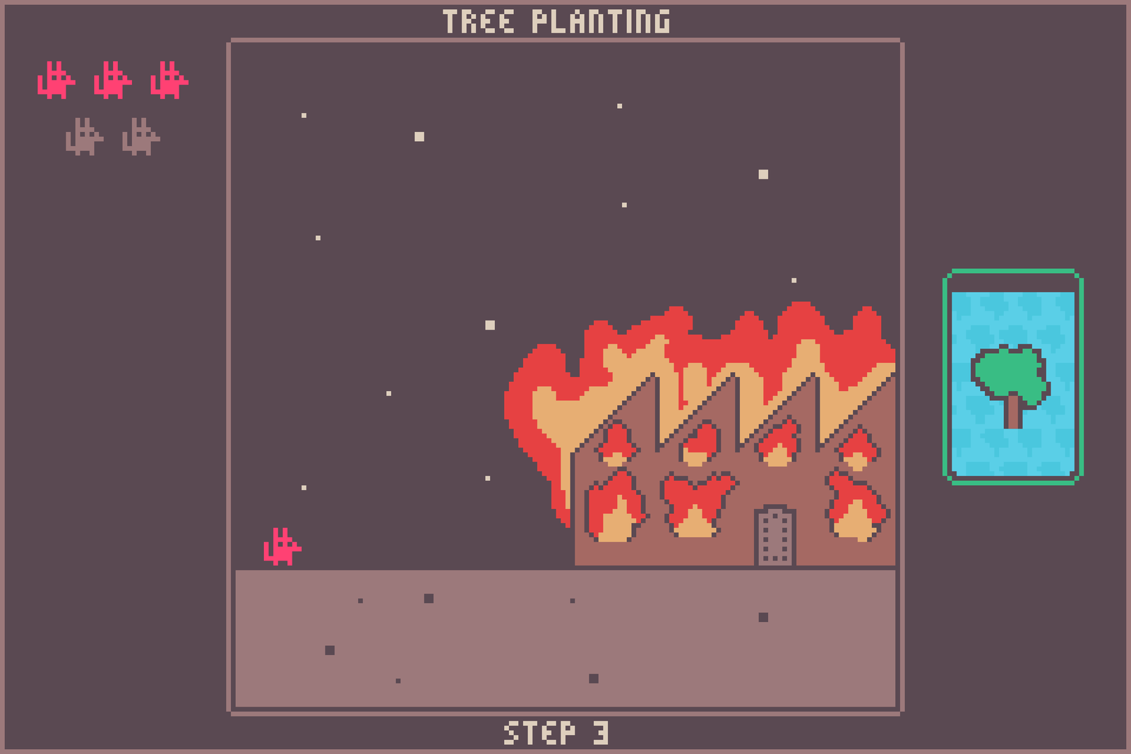 A minigame compilation about using any means necessary to save the planet! Help Ferdinand fight climate change and the government while caring for his mental health in this minigame compilation! Choose actions to take based on your resource need and get ready to mash your keyboard or controller.