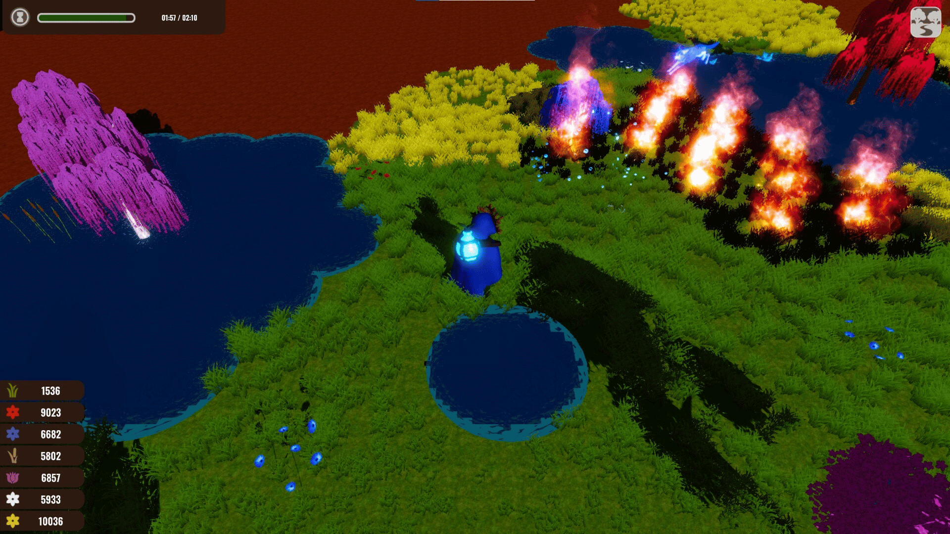 A small incremental game about greening the land. Play as the Growmancer, a wizard traveling worlds with his canine companion to transform wastelands into fertile grounds and battle destructive wildfires. Upgrade both via a skill tree. Challenge yourself or just relax.