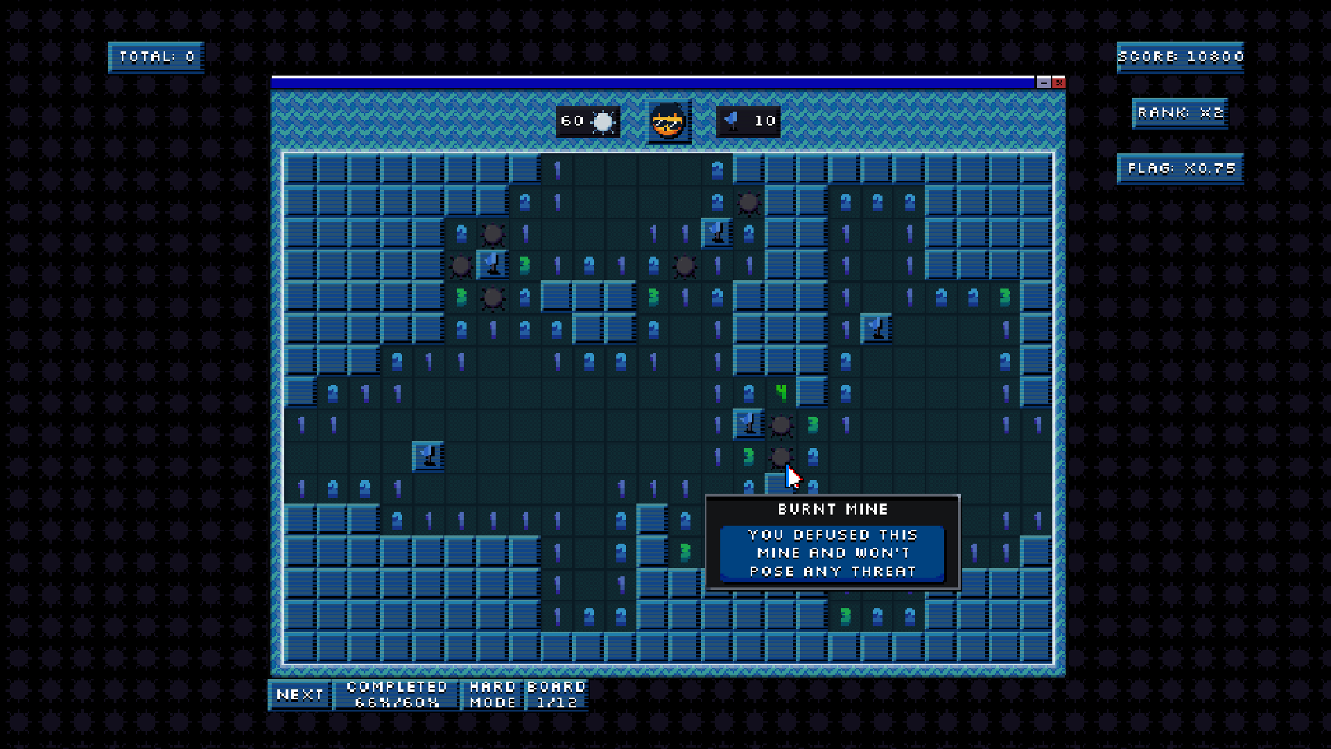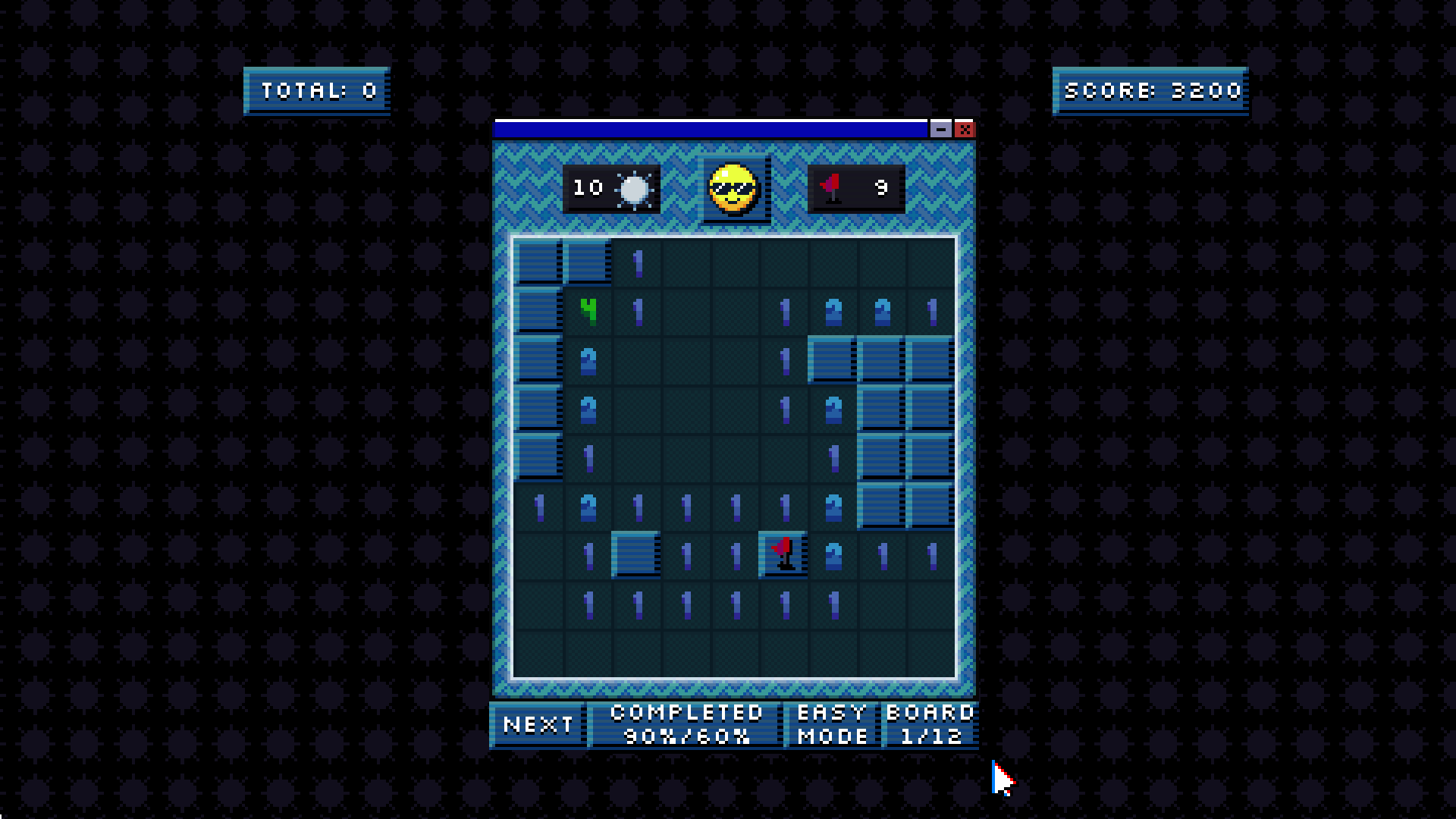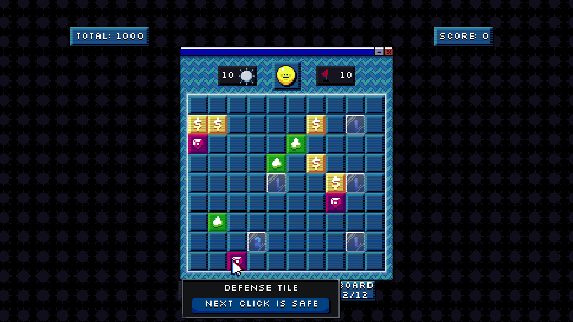 A roguelite minesweeper game where you use different tiles, flags and skills to clear multiple boards in a row