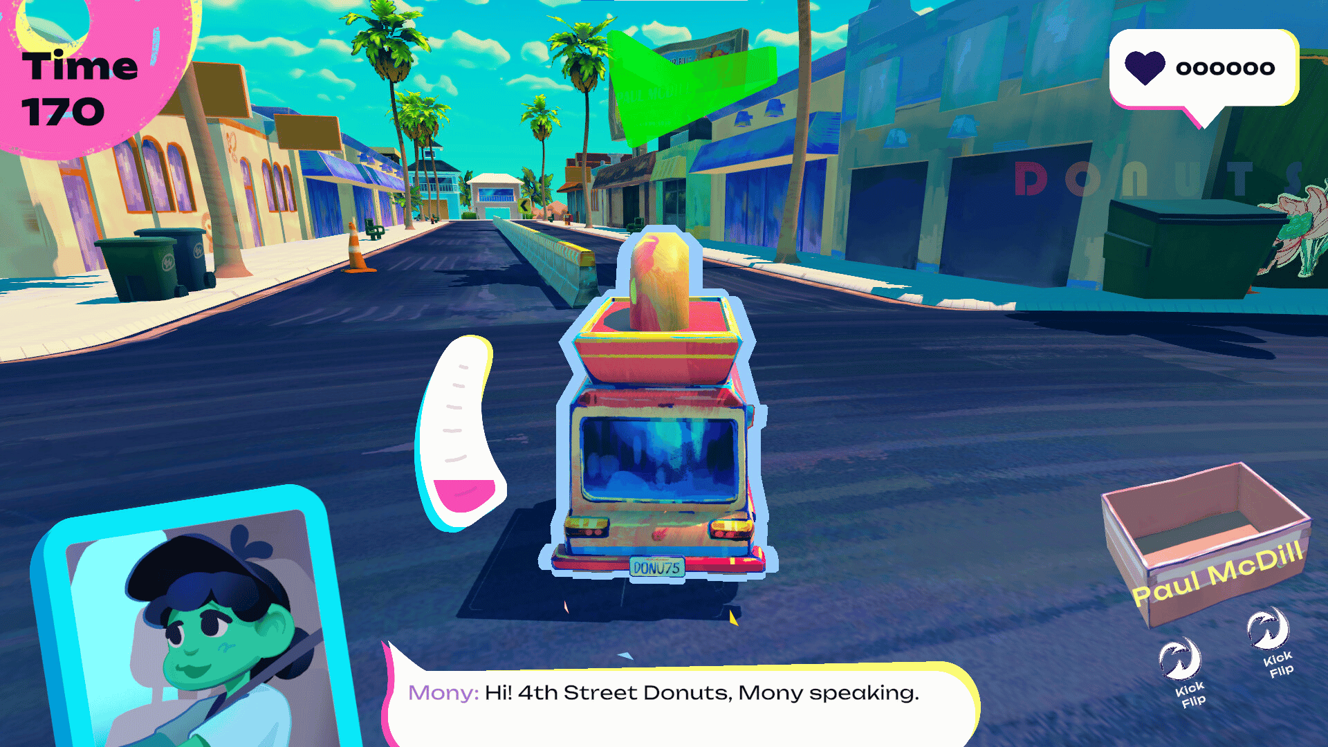 Drive, stunt, and deliver your way to saving your family's slowing donut business in this radical arcade driving/skateboarding adventure meets food delivery service!