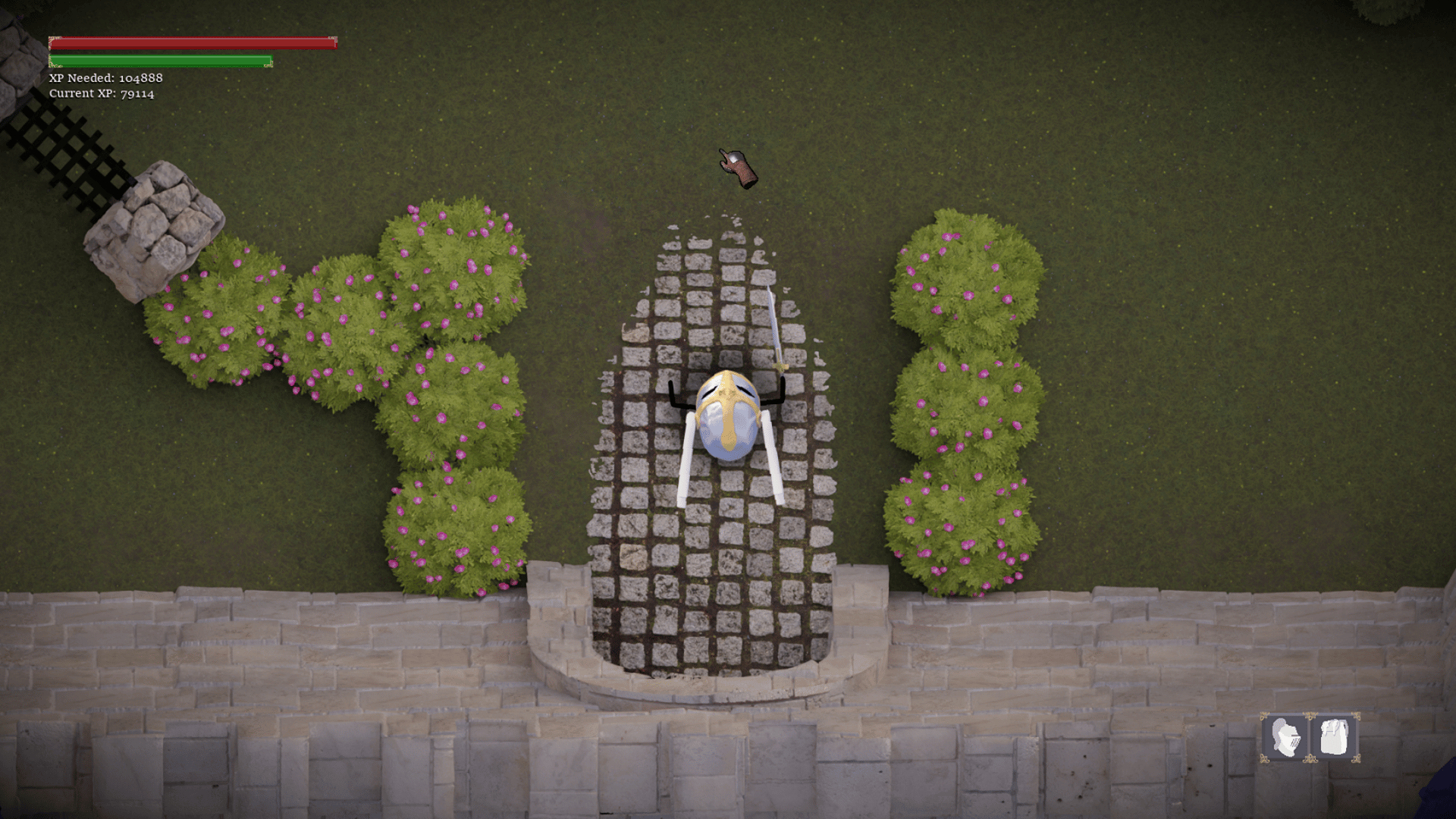RPG game Twin stick style top down combat, featuring a timed parry system inspired by Sekiro. Plenty of weapons and armor, as well as enemies with different movesets, and (4) challenging bosses. Game length is short enough to complete in ~3-4 days for someone with average skill playing a handful of hours a day.